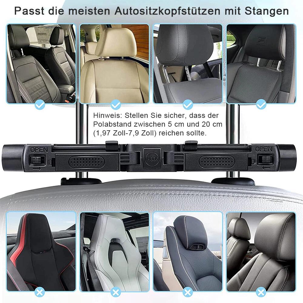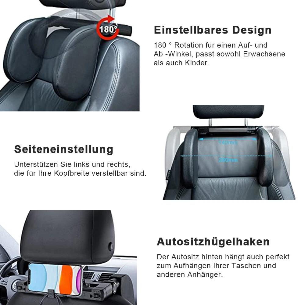 Product Name: Car Seat Headrest & Neck Pillow (Black) – for Kids & AdultsFitment - Compatible only with car seats that have metal posts - Post spacing: 5 cm – 20 cmKey Features - Built-in universal hook – hang shopping bags, backpacks, etc. - Dual aroma slots – insert scent pads or charcoal for odor removal - 180° rotation – adapts to children and adults of different heights Width adjustable left/right – won’t block seat belt, keeps neck comfortable - Flip-up design – folds away when not in use to save spaceMaterial & Safety - Shell: high-strength ABS, impact-resistant - Cover: premium breathable leather, wipe-clean - Padding: thick memory foam for soft head & neck supportInstallation & Service - Tool-free setup in about 3 minutes – fun family DIY - Please confirm post spacing before purchase - Installation video and customer support availablePackage Contents - 1 × U-shaped car headrest - 2× memory-foam side supports - 1 × protective cotton pad - 1 × user manual - 4 × installation tools