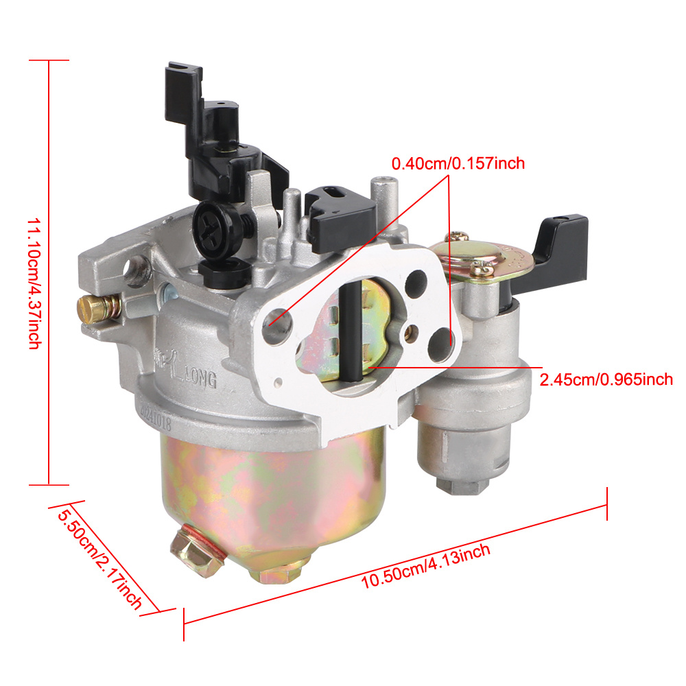 Carburetor for Honda GX160 GX168F GX200 Engine MotorFeatures - Gasoline Atomization : The carburetor is a sophisticated mechanical device that uses the energy of the inhaled to atomize gasoline. - Corresponding Concentration : According to the requirements of different working states of the engine, the corresponding concentration will be automatically proportioned, and the corresponding amount of mixture will be output for the normal operation of the machine. - Wide Application : The carburetor can be installed on lawn mowers, generators, water pumps and other machines that use this model of engine. - Professional Application : This carburetor can be used for 170 168F gasoline engine, and suitable for GX160 GX390 engine. - Material : Made of rubber + aluminum alloy + plastic material, with exquisite workmanship quality, can replace old parts or damaged.Specifications - Product Name : Carburetor - Color : Silvery - Material : Rubber + Aluminum Alloy + Plastic - Application : Used for 170 168F gasoline engine, for GX160 GX390 engine - Size : As shown in figureNotes - Light shooting and different displays may cause the color of the item in the picture a little different from the real thing. - The measurement allowed error is +/ - 1-3mm.Package Included - 1 * Carburetor