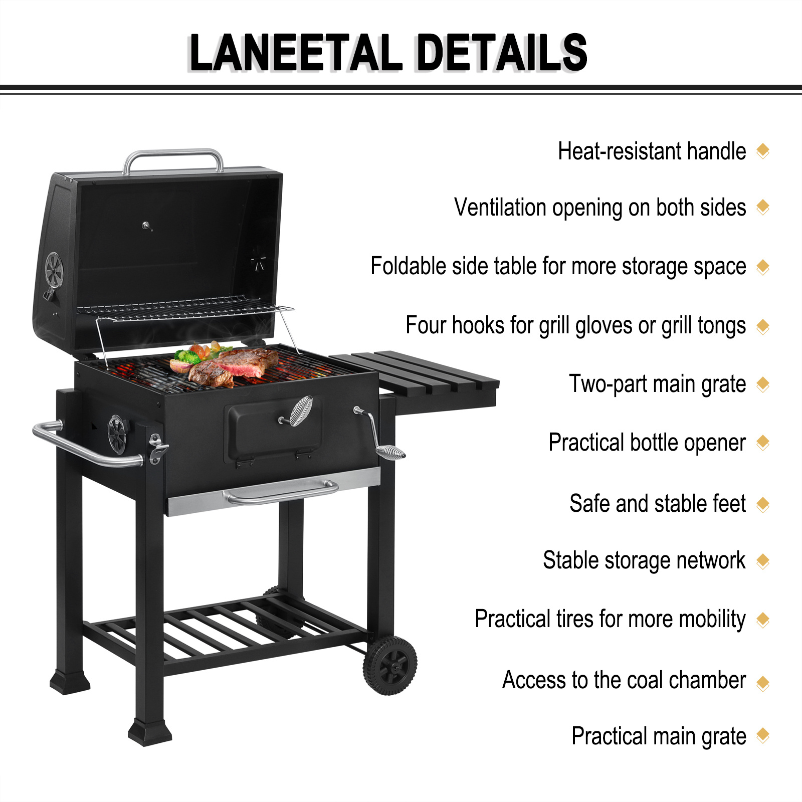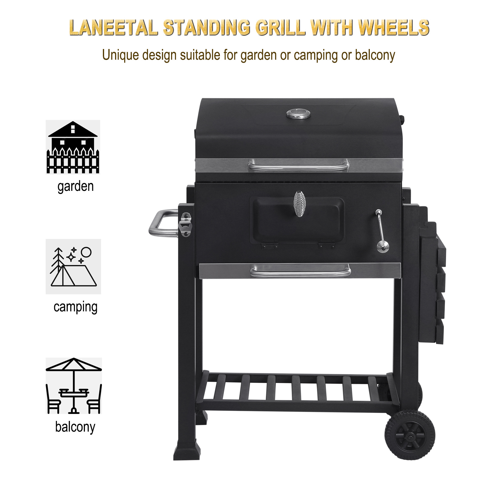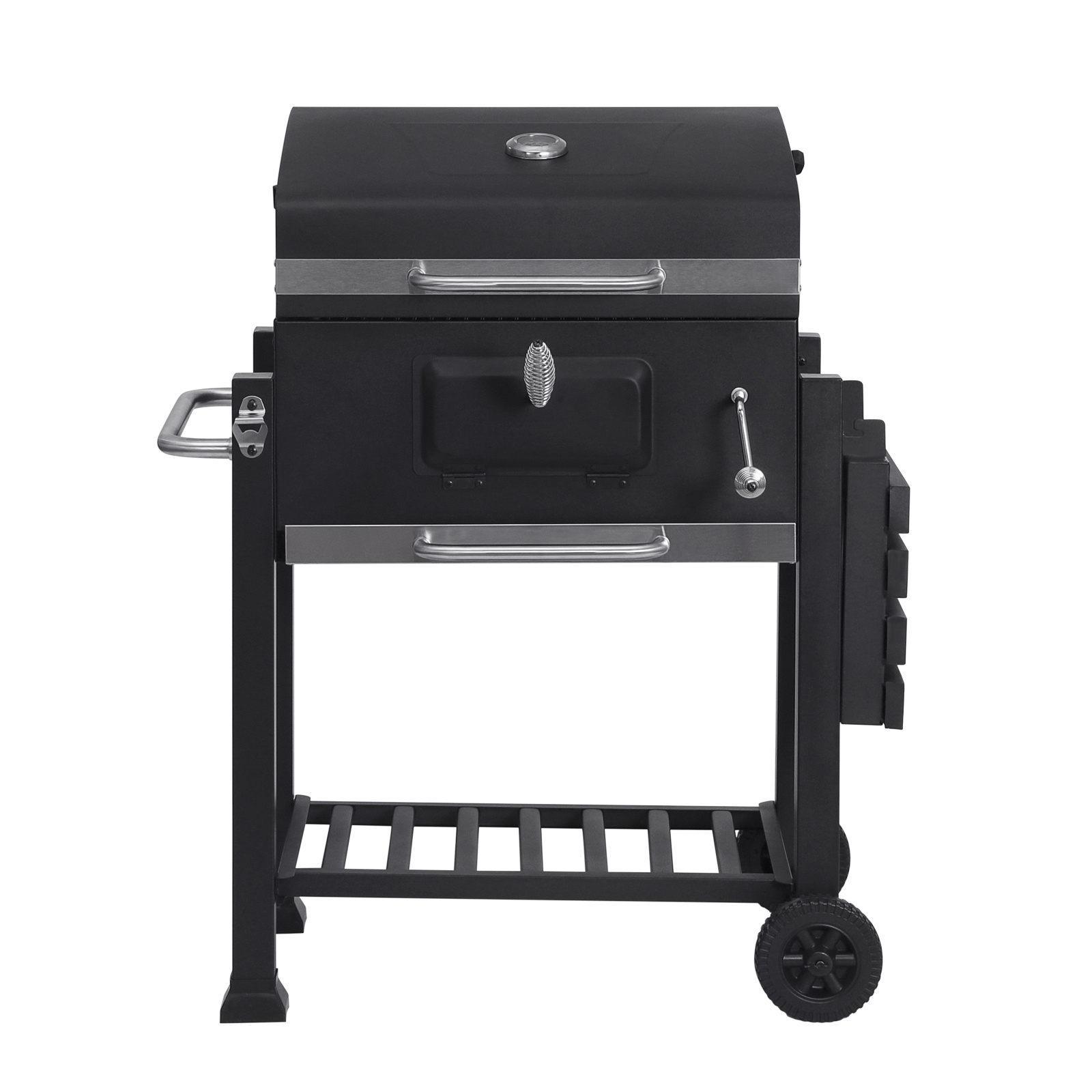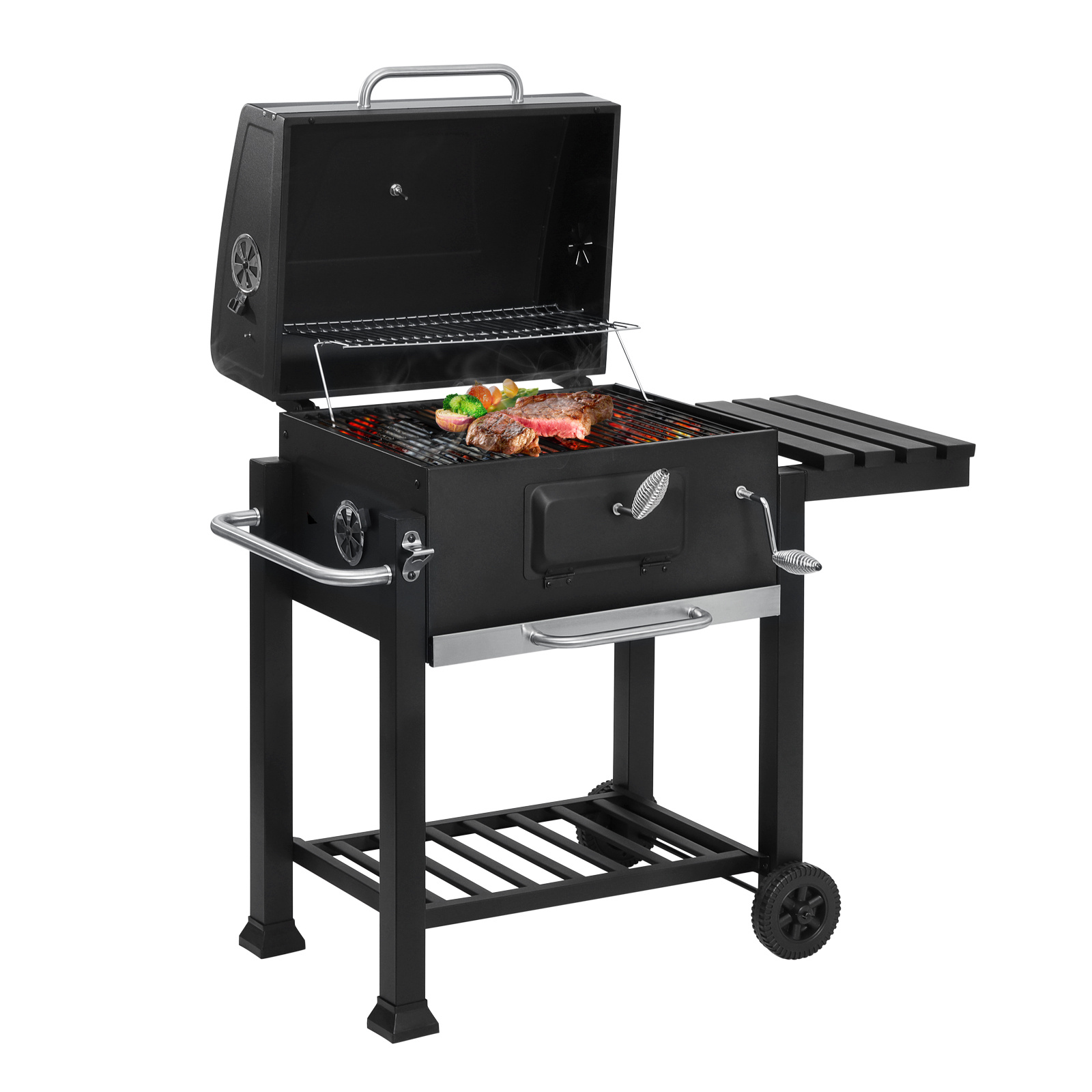 Charcoal Grill - Height-Adjustable Grill with Wheels, Suitable for Garden, Camping, and Picnics Features: Height-Adjustable Charcoal Grill: Equipped with practical wheels and a side handle, making it extremely mobile and easy to move. Adjustable Height: The height of the charcoal grill can be easily adjusted with a crank, allowing you to set your desired grilling temperature. Four Hooks Included: Four practical hooks are attached to the side shelf for storing grill tongs or other barbecue tools. Lid with Temperature Gauge: The built-in thermometer allows you to easily monitor and accurately assess the temperature inside the grill. Ideal for Family and Friends: The grill surface measures approximately 28×41.7 cm (2 pieces), with warming measures of about 53×32 cm, perfect for barbecuing with family and friends.Technical Specifications: Material: Steel Main Body Material: Steel Adult Assembly Required: Yes Number of Grills: 2 Grill Surface: Approx. 28×41.7 cm Weight: 26.5 kgPackage Includes: 1 × Charcoal Grill 1 × Instruction Manual Notes: All dimensions are manually measured and may have an error of 2-3 cm. The actual color of the product may vary slightly from the images shown due to different monitor and resolution settings. Decorative items are not included in the package.