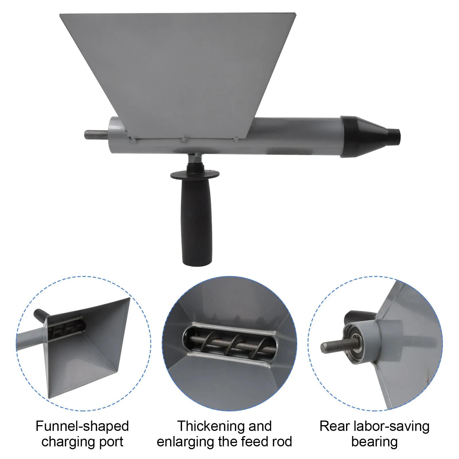 Cement Mortar Sprayer Tool 4 Nozzles Mortar PumpProduct Description: High-Quality Material: The sprayer is made of stainless steel, ensuring durability.Removable Nozzles: Equipped with 4 removable nozzles, threaded design, including flat and round nozzles, easy to operate, and can be used according to different scenarios.Applicable Scenes: Suitable for cement injection machines, mortar spraying, plaster, small-area shotcrete, floor mixtures, etc.Easy Operation: Very practical for spraying in tight areas, and can be easily operated by pressing the handle. Compact and Portable: Lightweight and compact, with a removable long handle for easy carrying. Specifications: Material: Carbon steelFunnel Size: 19.8 x 19.7 cm / 7.80 x 7.76 inchesOverall Size: 32.5 x 9.2 cm / 12.80 x 3.62 inchesPackage Includes: 1 x Sprayer (electric tool not included)4 x Nozzles