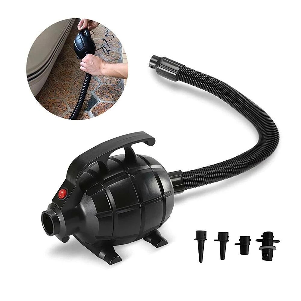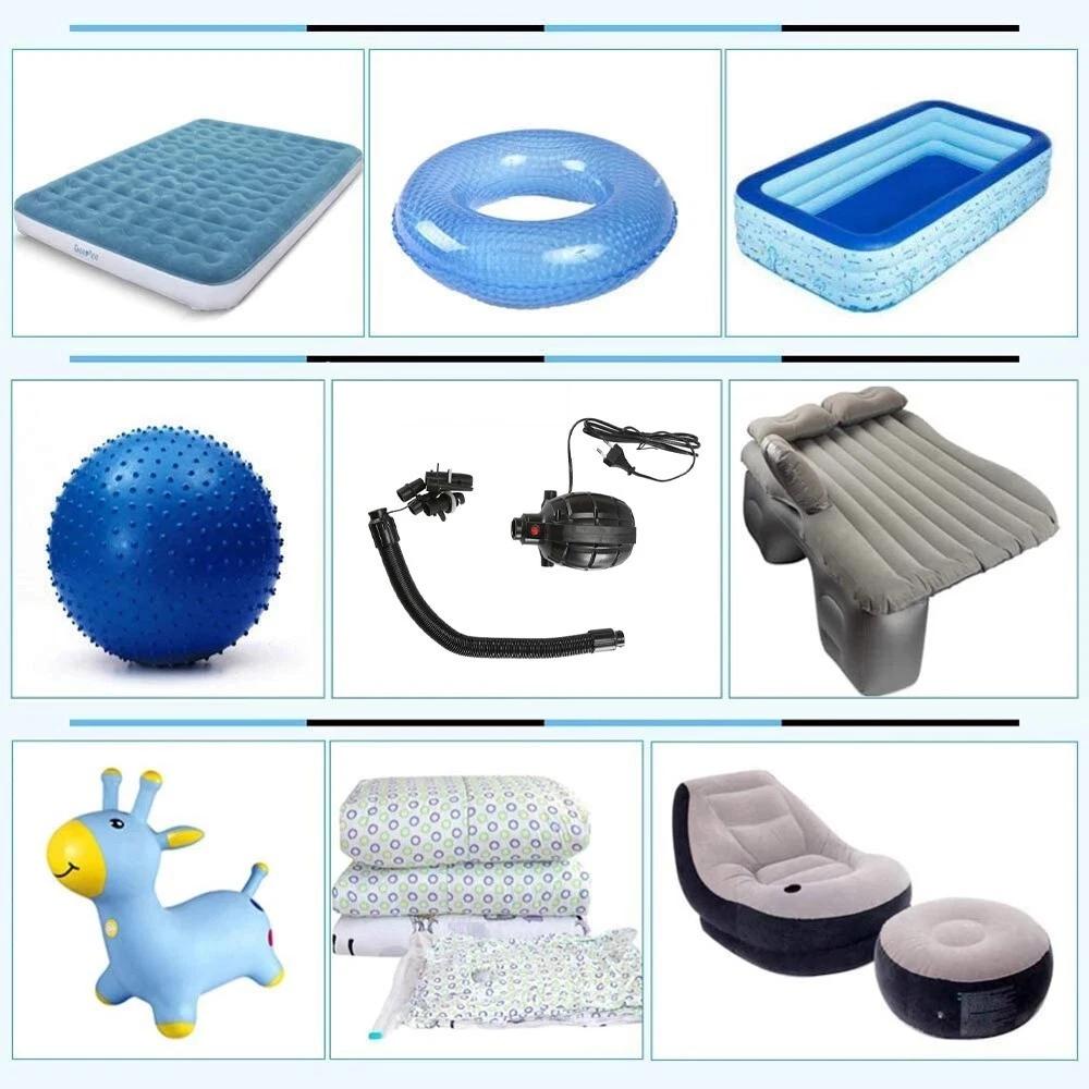 Product Name : Electric Air Pump for Inflatable Tumbling Air Track MatProduct Features: - Quick - Fill Pump : The air pump is ergonomically designed, compact and easy to hold, enabling fast inflation and deflation of air tracks, air mattresses, etc. - 4 Nozzles to Choose From : This electric pump comes with 4 different nozzles, making it versatile for various items. No need to buy extra pumps. - Lightweight and Comfortable Grip : The electric air pump is lightweight and features an improved ergonomic anti - slip curve, fitting comfortably in your palm. It's easy to operate for home use, such as inflating air mattresses, air sofas, etc. It can also inflate outdoor toys as long as a power outlet is available. - Easy to Operate : Comes with a power supply and a long power cord. Simply plug in and switch on, and it will inflate automatically, saving you waiting time. Note : Ideal for air mattresses, inflatable boats, swimming rings, compression bags, and inflatable toys. However, do not use this product for inflating balloons. Specifications: - Color : Black - Material : Plastic - Type : Electric Air Pump - Product Accessories : 1 Electric Air Pump, 1 Hose, 4 Nozzles - Product Size : As shown in the picture - Is It Charged : Can be turned on without charging - Power : 600WPackage Contents: - 1 × Electric Air Pump - 1 × Hose - 4 × Nozzles