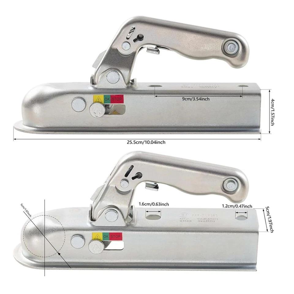 1Pcs Trailer Tow Connector 50mm Ball Head Cover Traction Connector For RV Boat Trucks Caravan Trailer CamperBullet Points: - Build Quality: Made of thickened metal material, this trailer connector has high strength and rustproof performance. It is not easily deformed and can withstand heavy loads. The thickness reaches approx. 0.3cm/0.12 inches and the load capacity is up to 800KG. - User-Friendly Design: Integrating design for tool-free installation and disassembly of the trailer connector. Enjoy a hassle-free experience and save time and effort with this effortless and convenient product. - Firm Connection: Maintain a steady and reliable connection with our trailer connector, built to fit most European trailers with its approximate 5cm/1.97 inches diameter and EU standard ball cover. Its connection stabilization feature ensures that it won't slip or come loose during use. - Enhanced Road Safety: Our trailer connector ensures a secure traction connection that gives you peace of mind on the road. The spring lock and anti-scratch coating prevent ball detachment and minimize friction, guaranteeing long-lasting use. - Enhance Vehicle Aesthetics: This trailer connector has a simple appearance that adds beauty to the vehicle. It is designed to match the trailer ball and create a harmonious look. The connector is also beautiful and generous, making your vehicle stand out from the crowd.Upgrade your towing game with our rustproof and tool-free towing trailer connector. Connection stabilization ensures safe and secure towing while extending service life. Plus, it's sleek design adds beauty to your vehicle. Say goodbye to complicated installations and hello to stress-free towing. Specification: - Model: 11602U - Product name: trailer ball cover - Single set size: (approx.)27.28.812.6cm/10.713.464.96 inches - Single set weight: (approx.)1.25 kgPacking List: - 1pc * Trailer Tow Connector Note: - Due to different lighting and screen settings, the item color may be slightly different from the picture. - Due to different manual measurements, please allow a 1-2cm difference in size.