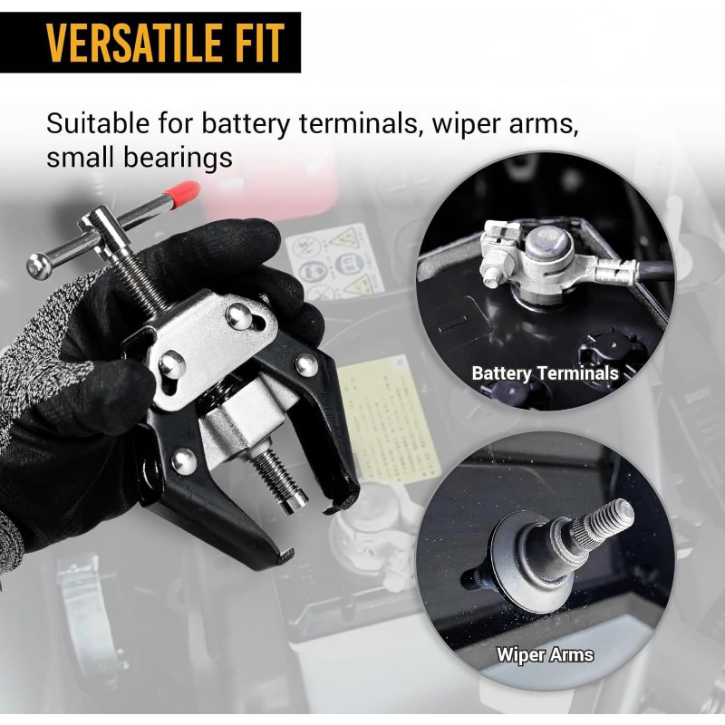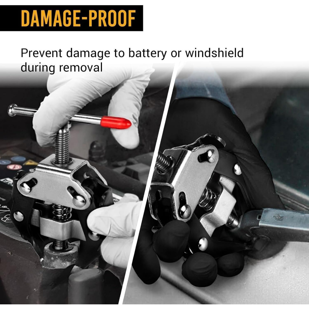 Specifications: Name: Wiper arm remover Material: Carbon steel heat-treated Weight: approx. 343 g Product size: about 14x8.5 cm / 5.51x3.35 inchesPack List: Windshield wiper arm remover *1Bullet Points: High-grade Material: Made of carbon steel and treated with a special heating process, this windshield wiper arm remover ensures long-lasting durability. Distinct Design: Our windshield wiper arm remover is expertly designed with high thread precision, making it simple and practical to remove wiper arms from most models without causing damage to the arm. Simple to Use: Achieve effortless removal with our user-friendly windshield wiper arm remover. Simply tighten the knurled cone, press the jaws under the clamp, and turn the center screw to lift clamps with ease and without any hassle. General Purpose: Boost your vehicle maintenance with our multi-functional tool that effortlessly removes bolted-on windshield wiper arms. Suitable for arms that fit over a tapered spline, while also helping to tighten bolts. Perfect Gift: For mechanics and DIY enthusiasts who want to achieve efficient results, this windshield wiper arm remover simplifies the removal process, saving time and effort without compromising on quality. Specifications: Name: Wiper arm remover Material: Carbon steel heat-treated Weight: approx. 343 g Product size: about 14x8.5 cm / 5.51x3.35 inchesPack List: Windshield wiper arm remover *1