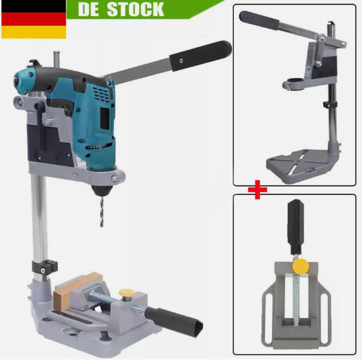 Product Name: Multifunctional Drill Press StandProduct Features: · Designed for 400mm drill bits, a versatile and practical tool.· Maximum drilling depth of 60mm.· Features vertical adjustment for the installed drill to ensure stable operation, significantly reducing the risk of bit breakage or damage.· Enables precise drilling in various materials.· Constructed from lightweight yet durable aluminum alloy.· Simple operation: just control the spring-loaded rod for automatic return to the initial position.· Universal clamp fits most hand drills (38-43mm). · Perfect for both home use and professional workshop applications.Technical Specifications: · Stand Height: 400mm· Clamp Range: 38-43mm· Adjustable Height· Multifunctional Drill Stand Design· Expanded and widened base for enhanced stability· For use in combination with your drill· Integrated Drill Stand and Vise ComboPackage Includes: · 1 x Drill Press Stand (Drill Not Included)· 1 x Vise