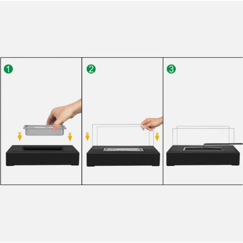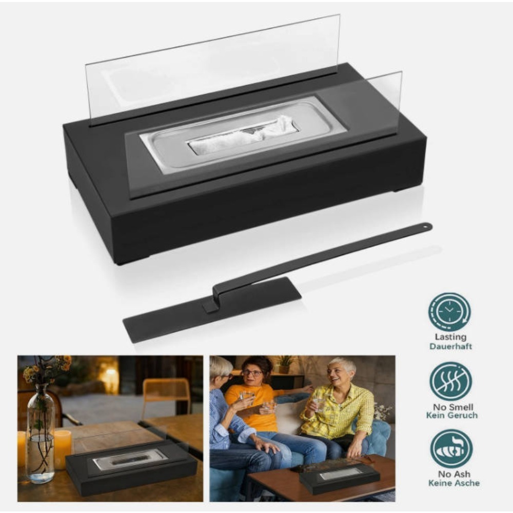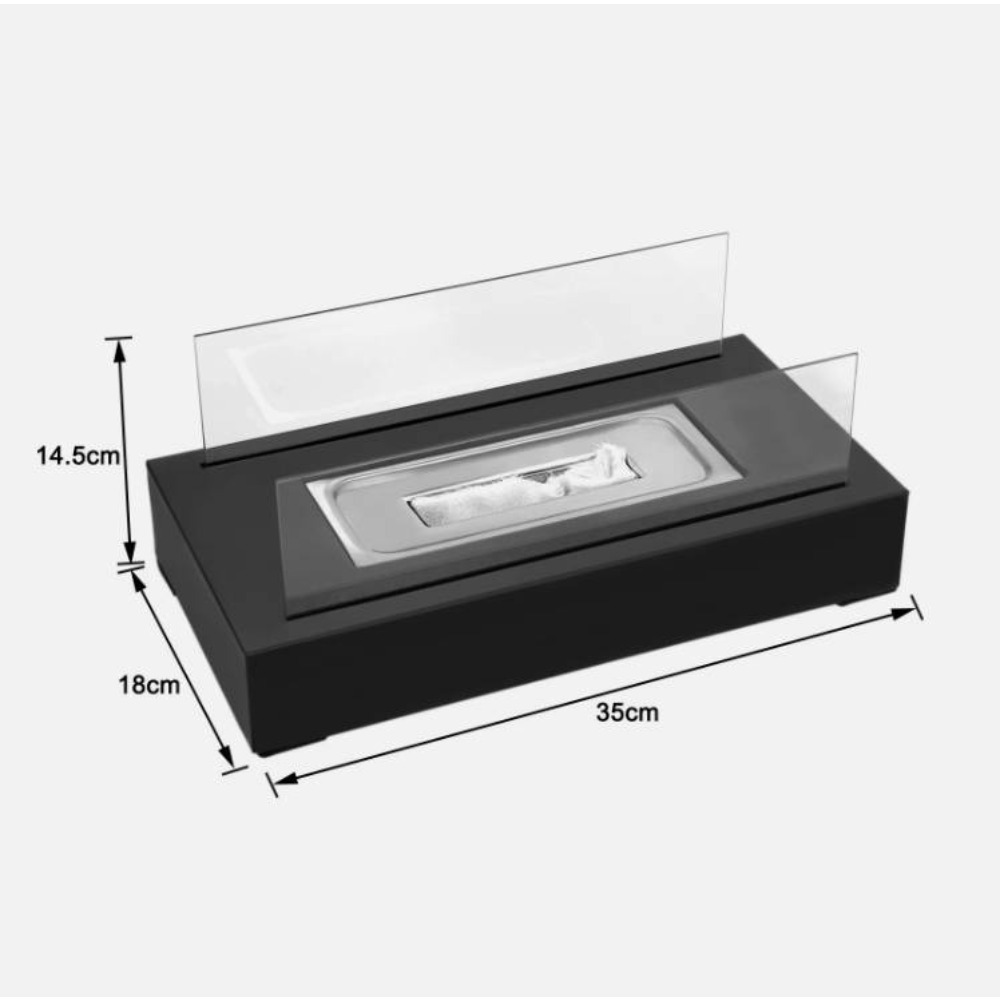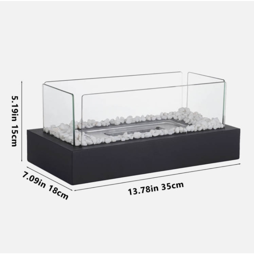 Rectangular Tabletop Fireplace**Product Snapshot** - Condition: Brand-new, unused, undamaged in original box - Type: Rectangular tabletop fireplace - Size: L 35 cm × W 18 cm × H 14.5 cm (see photos) - Materials: Tempered glass panels + stainless-steel burner + steel body - Colour: Black metal, clear glass - Fuel: bio-ethanol 95% (tank ±130 ml, burn time 45-60 min, flame 10-15 cm) - Note: Fuel NOT included **Package Contents** 1. Stainless-steel combustion base with non-slip feet ×1 2. Tempered-glass side panels (pre-formed vents) ×1 set 3. Metal snuffer stick ×1 on of 1-2mm**Ideal Usage** - Study desk: soft flame for late-night reading - Kitchen island: visual centrepiece while cooking - Coffee table: modern alternative to candles - Dining table: linear fire becomes dinner conversation starter - Patio/balcony: adds warmth and style to outdoor drinks **Safety Notes** - Use only bio-ethanol or denatured alcohol; never gasoline/kerosene - Do NOT move while lit; allow 15 min cooling before touching - Place on heat-resistant, stable surface away from flammables - Keep children & pets at a safe distance—flame is fully visible **Item Specifics** Condition: New Type: Tabletop Fireplace Material: Stainless Steel / Tempered Glass Style: Modern Features: Smokeless, Ash-less, Odourless, Snuffer Included Room: Study, Kitchen, Living Room, Dining Room, Patio Brand: Unbranded MPN: Does Not Apply