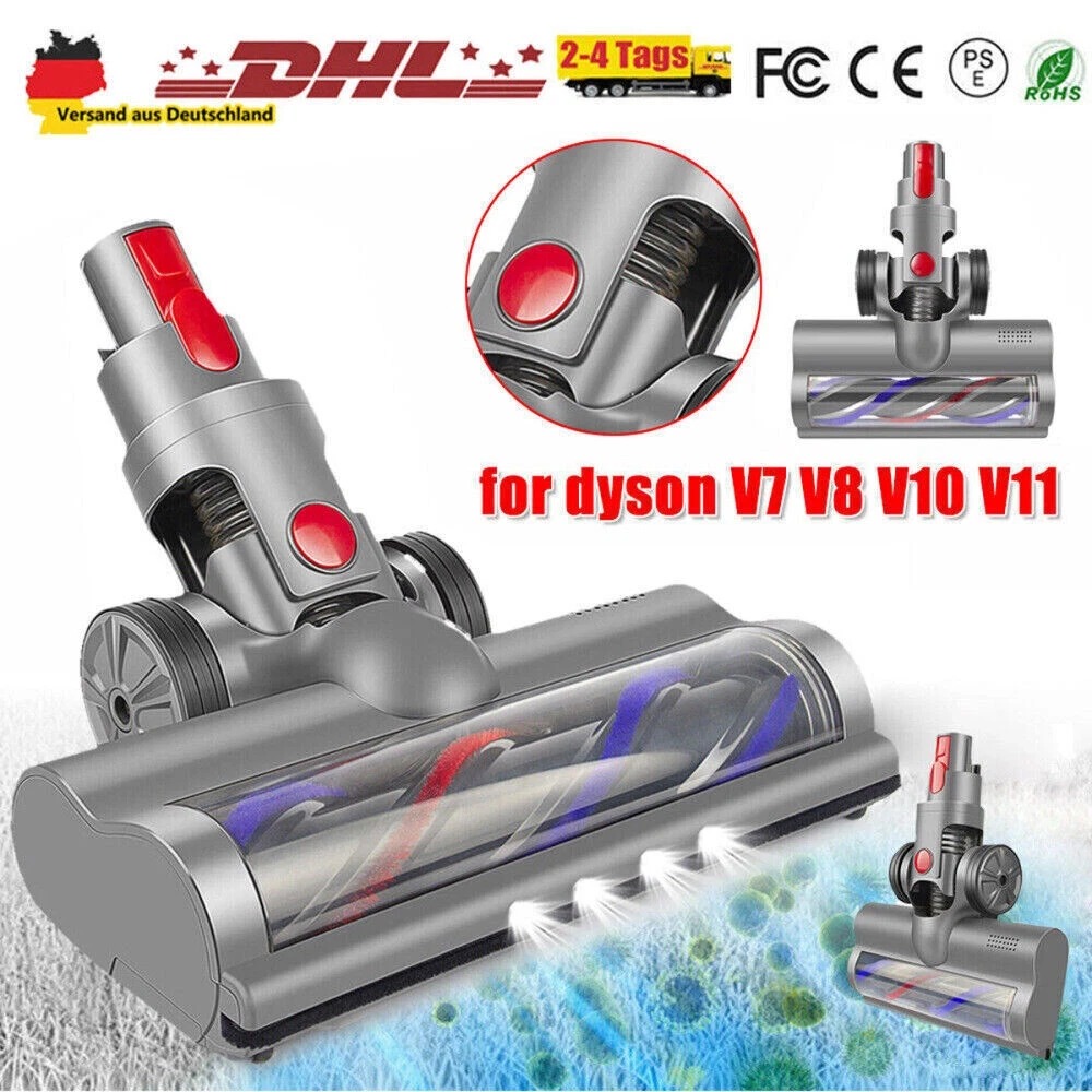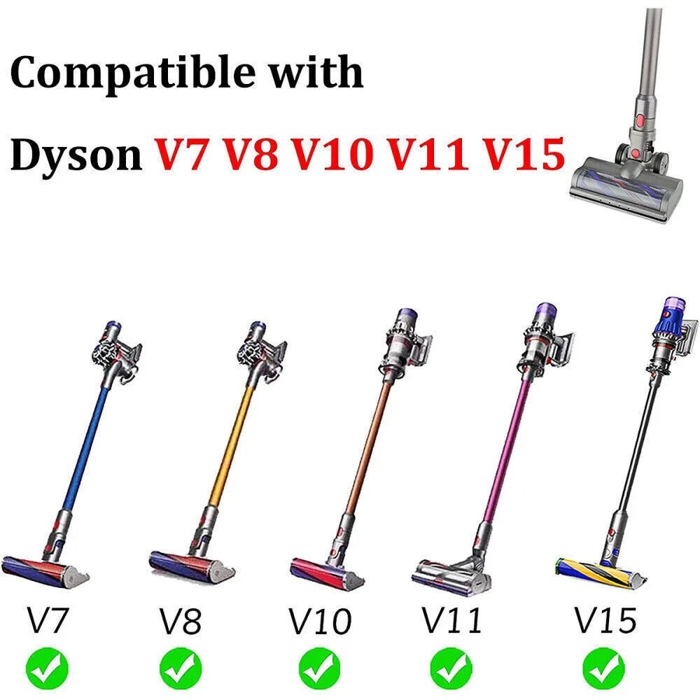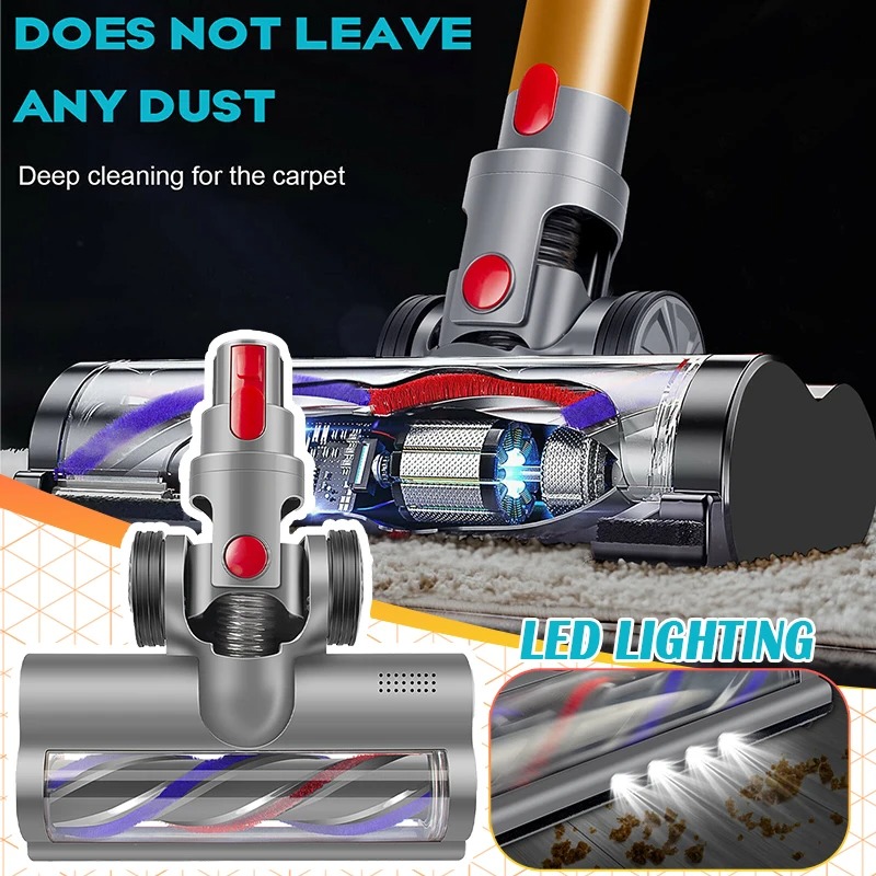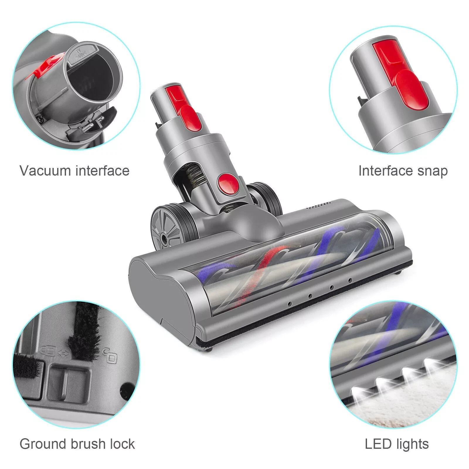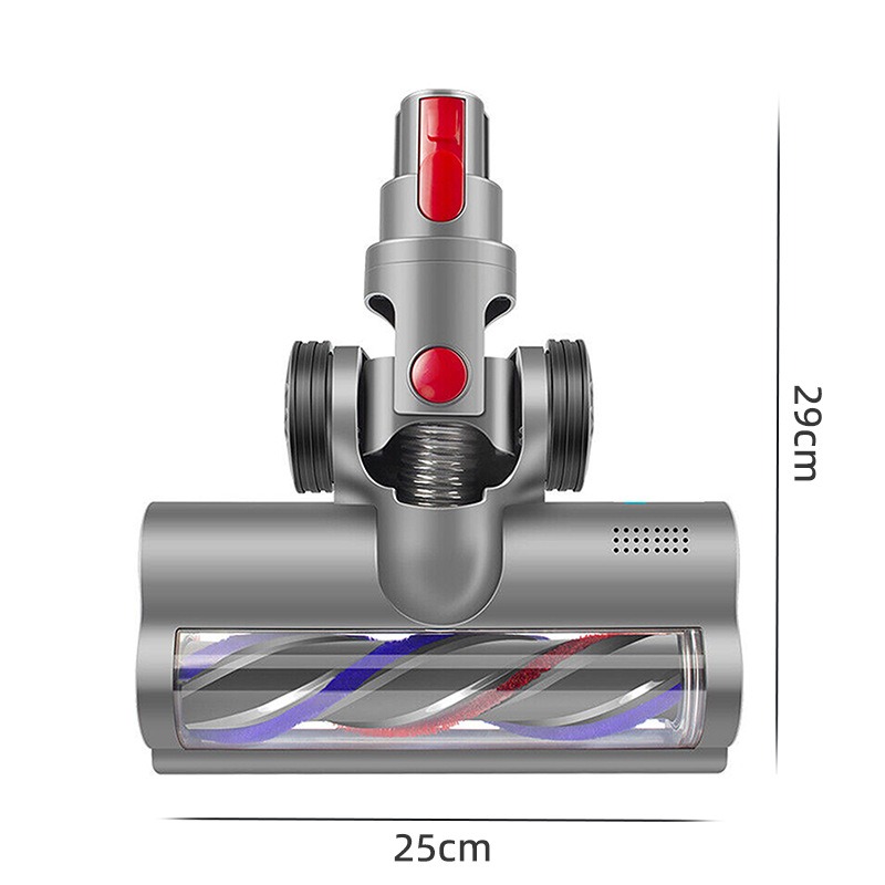Vacuum Brush Head Floor Cleaning Tool with Electric Turbine Floor Brush Head Accessories for Dyson V7 V8 V10 V11 Features : - Efficient Cleaning : The built - in blue carbon fiber and red nylon brush strips can quickly and efficiently absorb stubborn stains in-depth, allowing you to perform a thorough cleaning wherever needed. - Suitable for Various Floor Types : With 2 small wheels at the front bottom and 2 large wheels at the back, this motorized head works well on many types of floors, such as carpets, marble, and smooth tiles, but is specifically designed for carpet floors. - Quick - Release Soft Roll: Purple - Red - Black - Dimensions : - Length: 29cm - Width: 25cm Working Width: approx. 21.6cm Note : A manual measurement error of 1 - 3mm is allowed. Package Contents : 1×Brush Head
