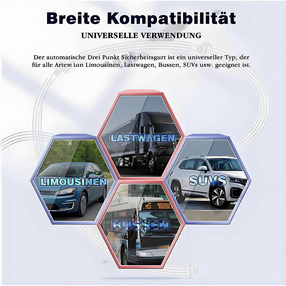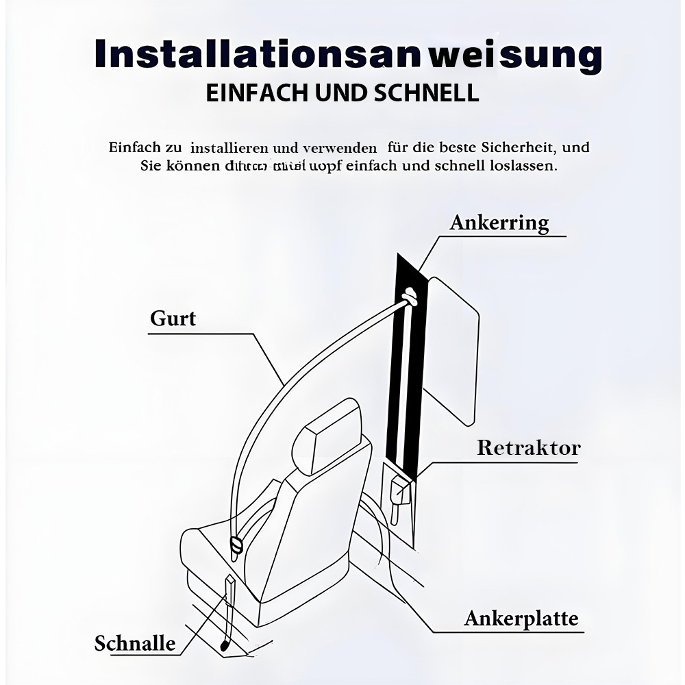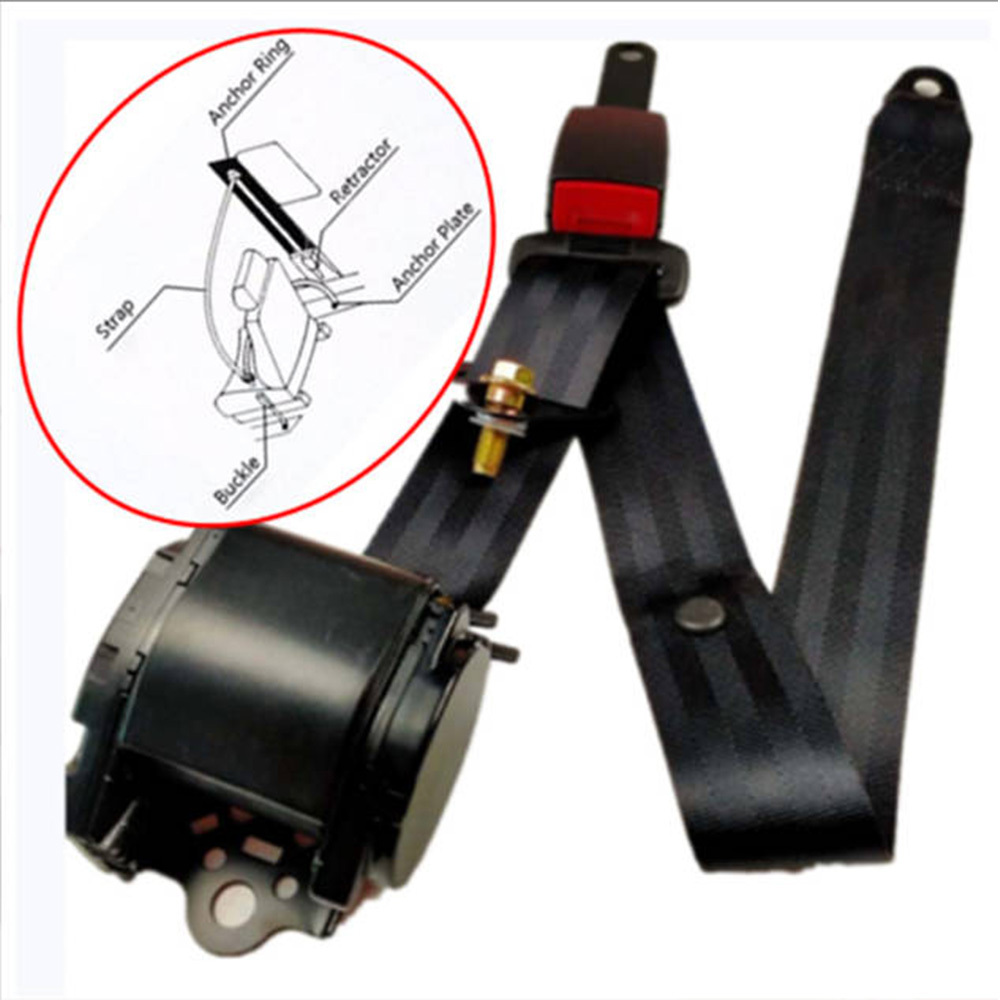**Product Title: Universal Automatic 3-Point Seat Belt**** Overview: ** - Universal fit for various vehicle types including sedans, trucks, buses, SUVs. - Vertical installation only, easy to install.** Features: ** - Automatic emergency locking mechanism for enhanced safety. - Adjustable length to fit different body sizes. - High-strength materials for durability and robustness. - Includes all necessary hardware for easy installation.**Technical Specifications: ** - Belt Size: Length (max. 290cm), Width (4.7cm), Thickness (0.1mm) - Tensile Strength: 26700 N - Opening Force: 10 N - 60 N**Included Components: ** - Retractor with belt ( Width: 4.7 cm / 1.85") - Metal bolts *5 - Plastic bolts *4 - Belt anchor plate *1 - Installation screws *4 - Nuts *4** Details: ** - High-quality metal buckle for secure fastening. - Ergonomic design for user-friendly operation. - Flame and explosion-resistant materials.** Compatibility: ** - Sedans - Trucks - Buses - SUVs**Installation Instructions: **1. Secure the anchor ring to the vehicle.2. Attach the retractor to the anchor ring.3. Route the belt through the buckle and secure.** Condition: ** - Brand new (100% new)** Color: ** - Black** Materials: ** - Belts made of high-quality ABS polyester. - Safety buckle made of steel.