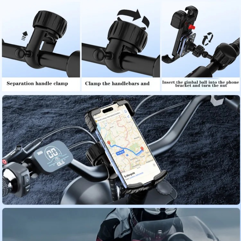 Universal Cell Phone Bike Holder 360 Degree Rotating Bicycle Motorcycle Cell Phone Holder for 5.1-6.8 Inch Cell PhonesProduct Features: - 360-Degree Rotatable: The phone holder can be rotated 360 degrees and features a gravity expansion design for easy adjustment to the optimal viewing angle. - Durable Construction: Made of high-quality plastic, it provides a reliable hold for smartphones ranging from 5.1 to 6.8 inches. - Universal Compatibility: Designed to fit various bicycle and motorcycle models, ensuring easy installation without additional tools or components. - User-Friendly Operation: The gravity expansion function secures the phone firmly, even during intense vibrations or acceleration, and requires no charging for convenient use. - Stylish Design: Combines functionality with aesthetics, matching various bicycle styles and integrating seamlessly into daily life. - Compact and Portable: With a lightweight and compact design, it's easy to carry and install, making it an ideal companion for bike and motorcycle trips. Specifications: - Material: High-quality plastic - Compatibility: Smartphones sized 5.1–6.8 inches - Applications: Bicycle and motorcycle rides - Features: 360-degree rotation, gravity expansion, no charging required, stable and secure hold - Size: Compact and lightweightPackage Contents: - 1×Bike/Motorcycle Phone Holder