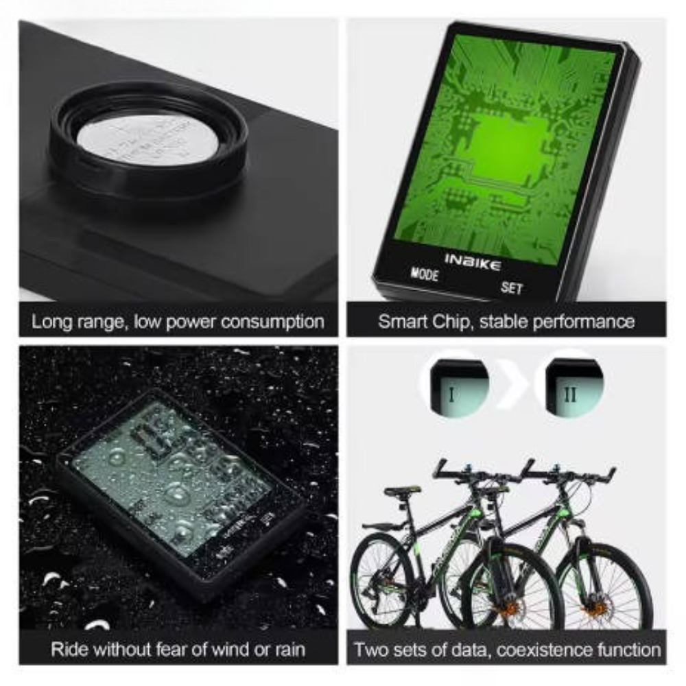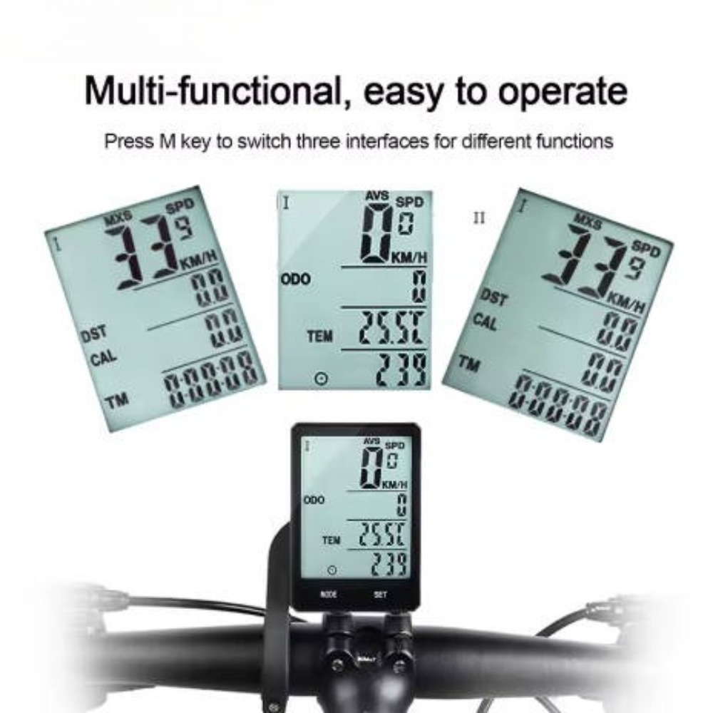 **Product Name: ** Wireless Bicycle Computer**Product Specifications: ** - Screen Size: 60mm * 42mm - Weight: 115g - Backlight Color: White - Waterproof Rating: Daily Waterproof - Application: MTB, Road Bike, Fixed Gear**Product Features: ** - 12 Functions: Clock, EL backlight, Average speed, Riding time, Total distance, Stopwatch, Metric/imperial alternative, Riding speed, Max speed, Riding distance, AUTO ON/OFF - Powerful waterproof design, easy to operate - LCD screen display - Multi-functional, simple operation**Package Contents: ** - Computer * 1 - Nylon Belts * 7 - Shake-Absorbing Sponge Pad * 2 - Rubber Loop * 1 - Wireless Base * 1 - Button Cell * 1 - Strong Magnet * 1 - Wireless Launcher * 1 - English Version Instruction * 1