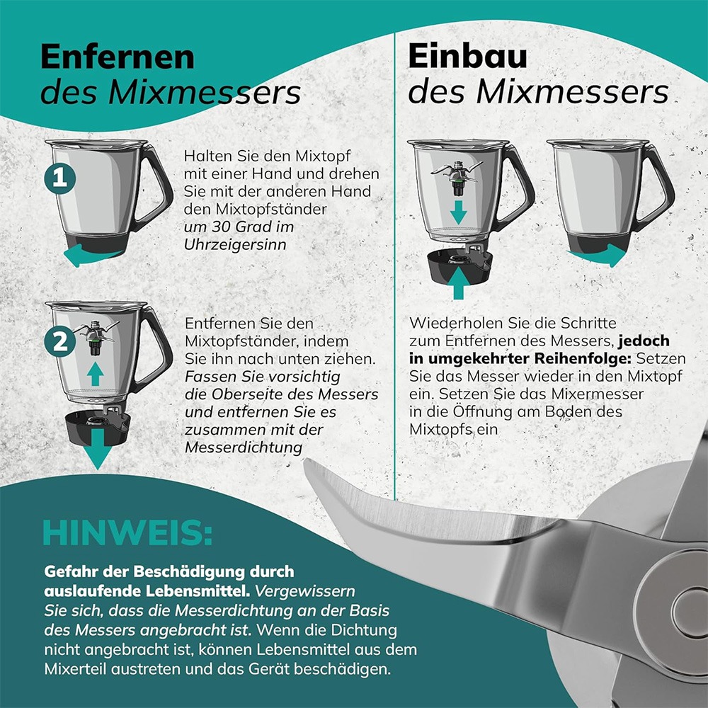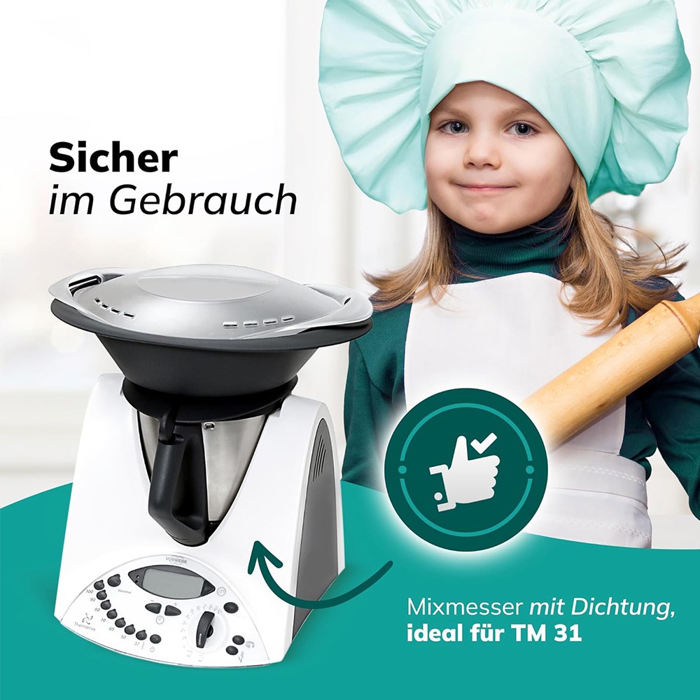 Mixing Knife Replacement for Thermomix Tm31 Knife - Replacement Blade with 4 Blades and Seal - Food Processor Tm31Product Features - Cost-effective : An alternative blade precisely designed for the Thermomix TM31 kitchen machine, offering great value for money. - Multifunctional : Equipped with four blades of different heights and a seal. When rotating clockwise, the mixing blade can chop ingredients; when rotating counterclockwise, the dull edges of the blades can stir, making it ideal for dishes with chunky ingredients that shouldn't be chopped, such as soup and jam. - Robust : Made of rust - free stainless steel that doesn't oxidize and meets food safety standards. Easy to clean, accurately fitted, and the sharp mixing blade is corrosion - resistant, perfect for mixing and chopping food.Application - Compatible with the replacement blade for the Thermomix TM31.Package Contents - 1×Replacement Blade