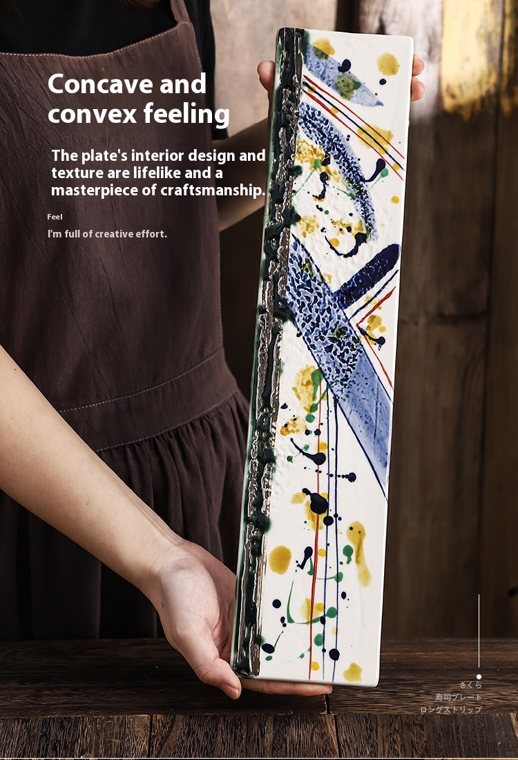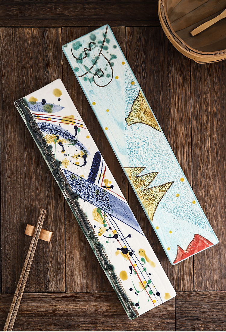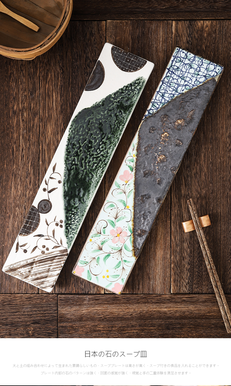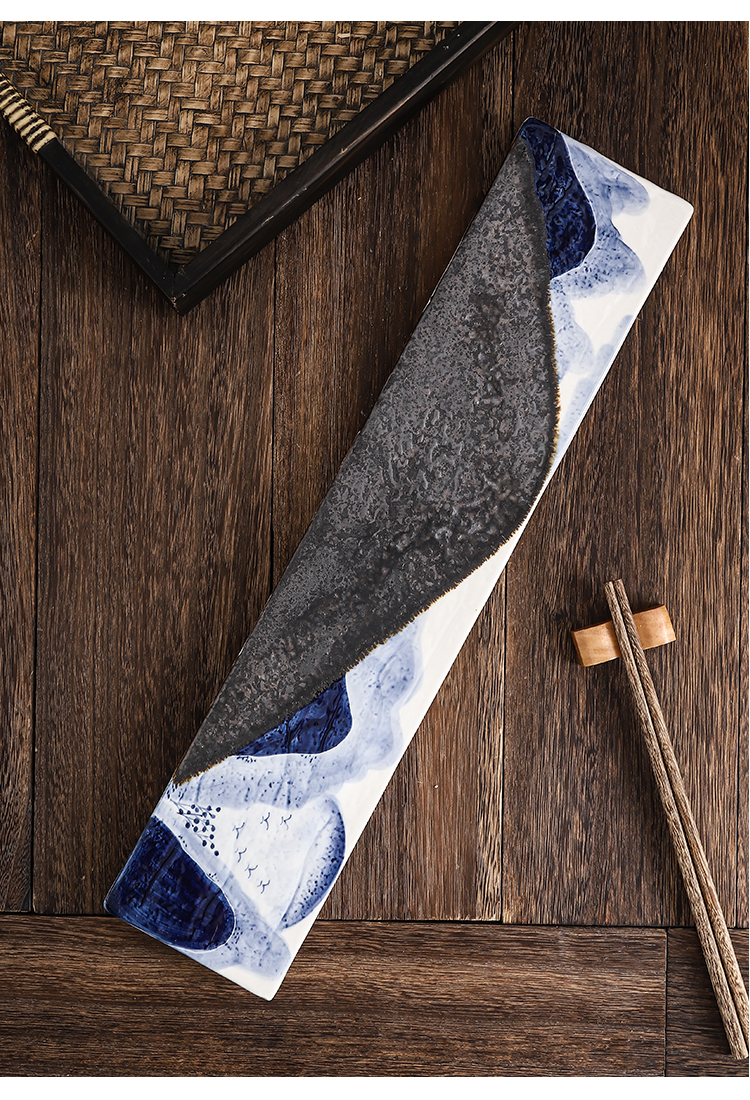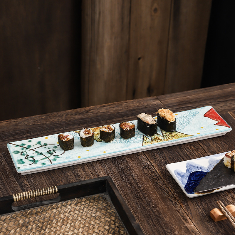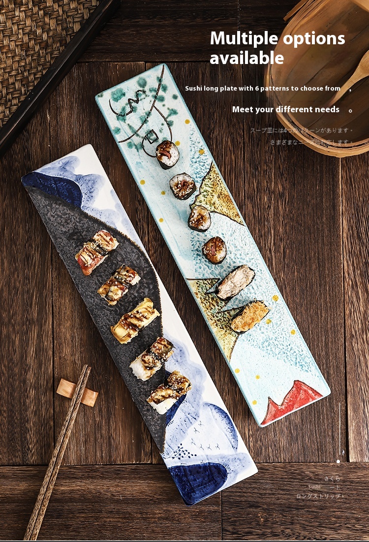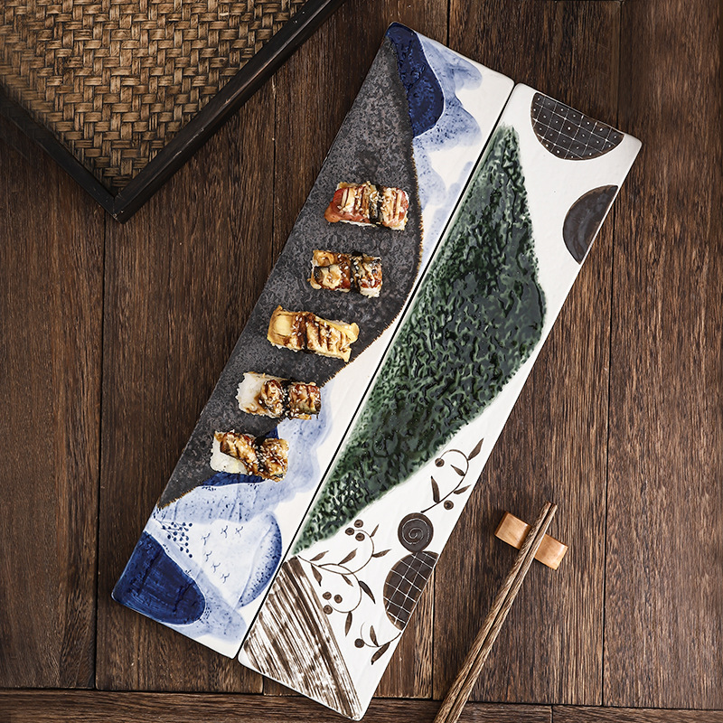 Color: 17.75-inch sushi long platter-grass, 17.75-inch sushi long platter-green water wave, 17.75-inch sushi long platter-Mountain Painting, 17.75-inch sushi long platter-rust mountain, 17.75-inch sushi long platter-string painting, 17.75-inch sushi long platter-ink Green Mountain