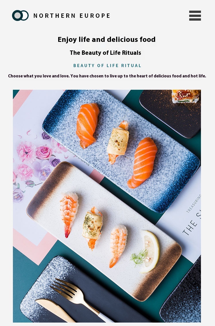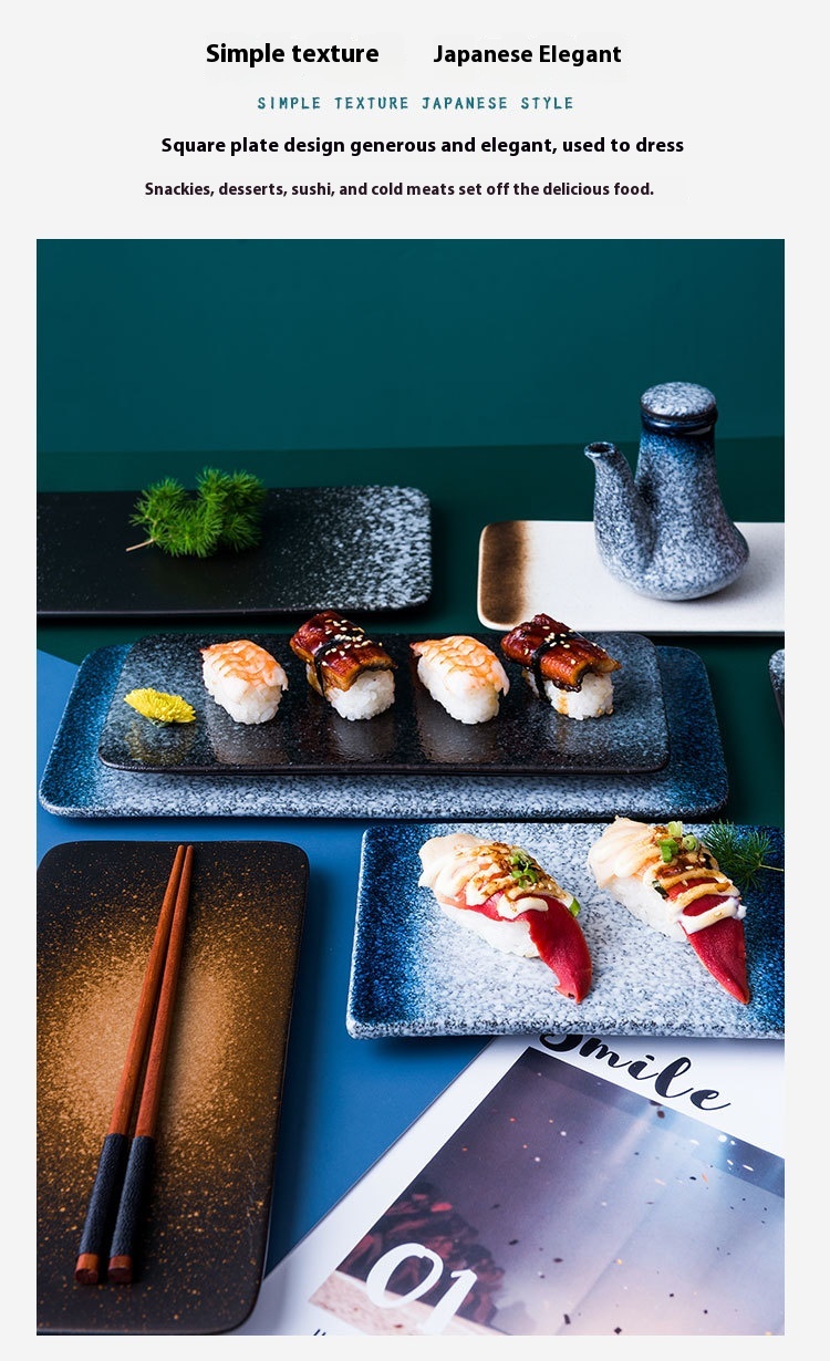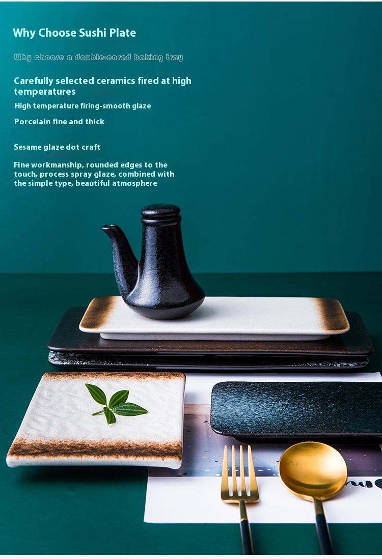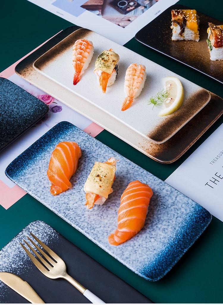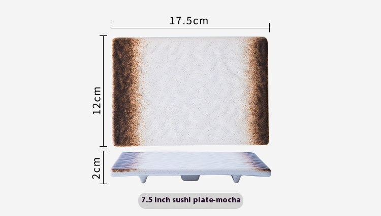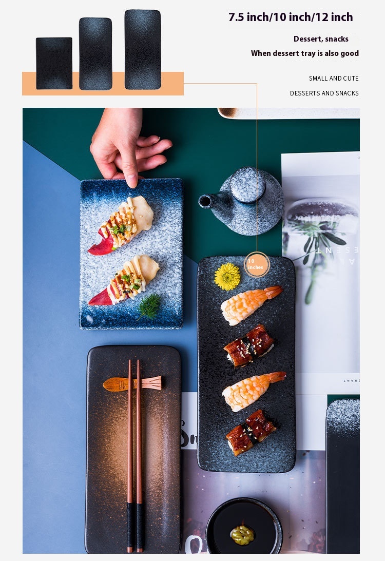 Color: 7.5-inch sushi plate-blue rhyme, 7.5-inch sushi plate-mocha, 7.5-inch sushi plate-moxue, 7.5-inch sushi plate-black, 7.5-inch sushi plate-late twilight, 10-inch sushi plate-blue rhyme, 10-inch sushi plate-mocha, 10-inch sushi plate-moxue, 10-inch sushi plate-late twilight, 10-inch sushi plate-black, 12-inch sushi plate-blue rhyme, 12-inch sushi plate-mocha, 12-inch sushi plate-black, 12-inch sushi plate-Twilight, 12-inch sushi plate-moxue