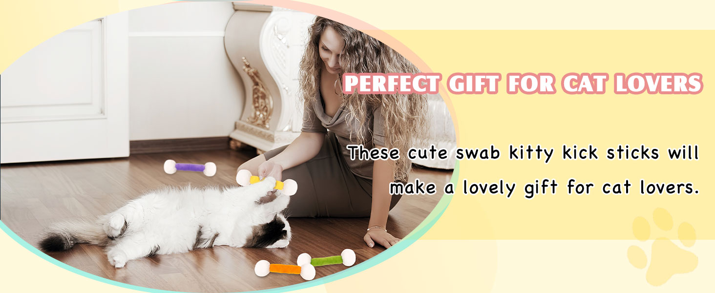 Perfect Gift - These plush catnip-filled toys will never hurt if stepped on. Also, it can attract your cats' interest and encourage their natural instinct. Keep your cats active and happy while they are playing with these adorable toys. These cute swab kitty kick sticks will make a lovely gift for cats and cat lovers.