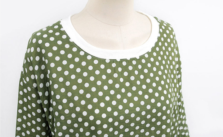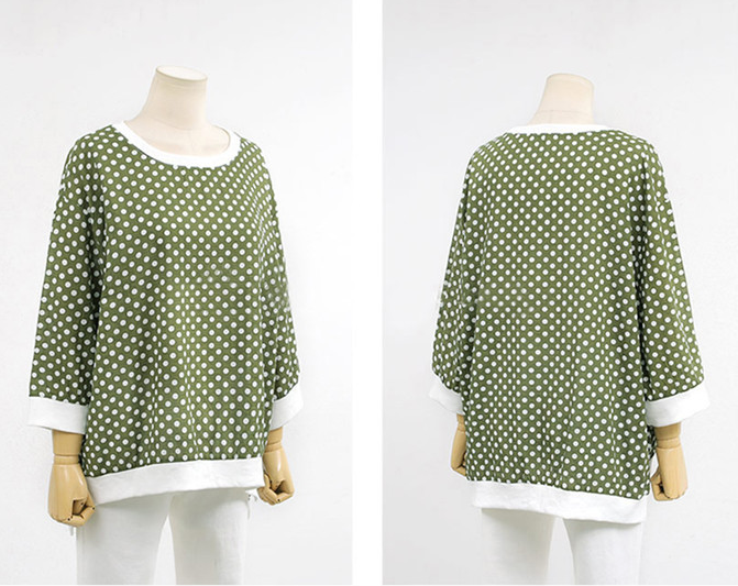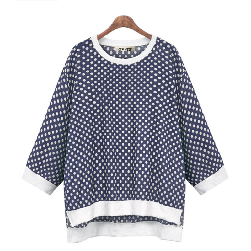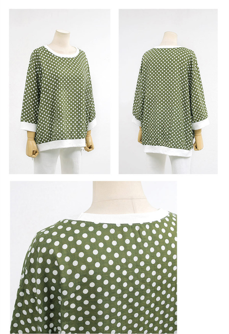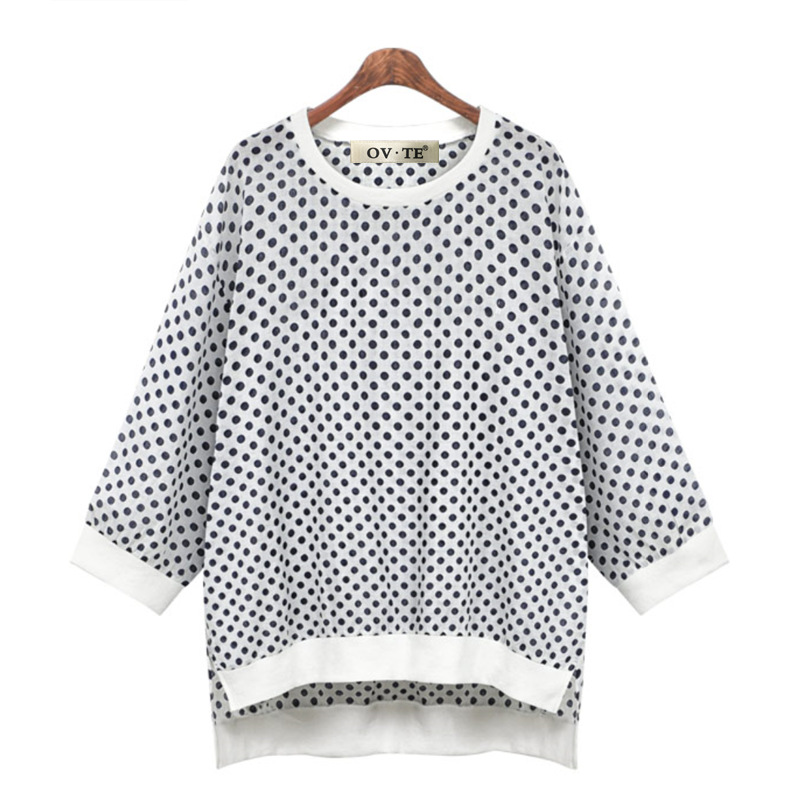 Sweater Polka Dot Round Neck Three Quarter Sleeve Top T-shirt
