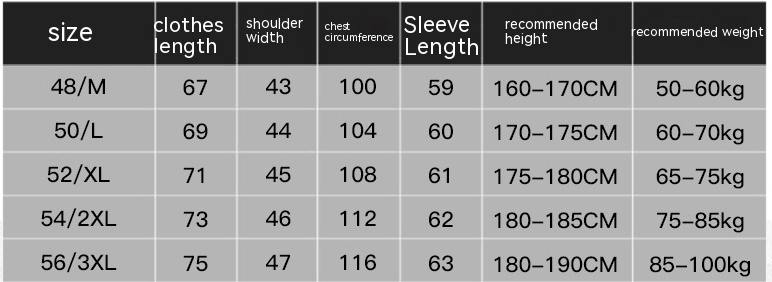 Size: 165/M/105,170/L/110,175/XL/115,180/XXL/120,185/3XL/125
