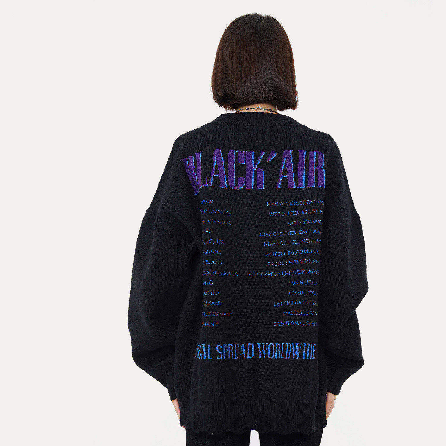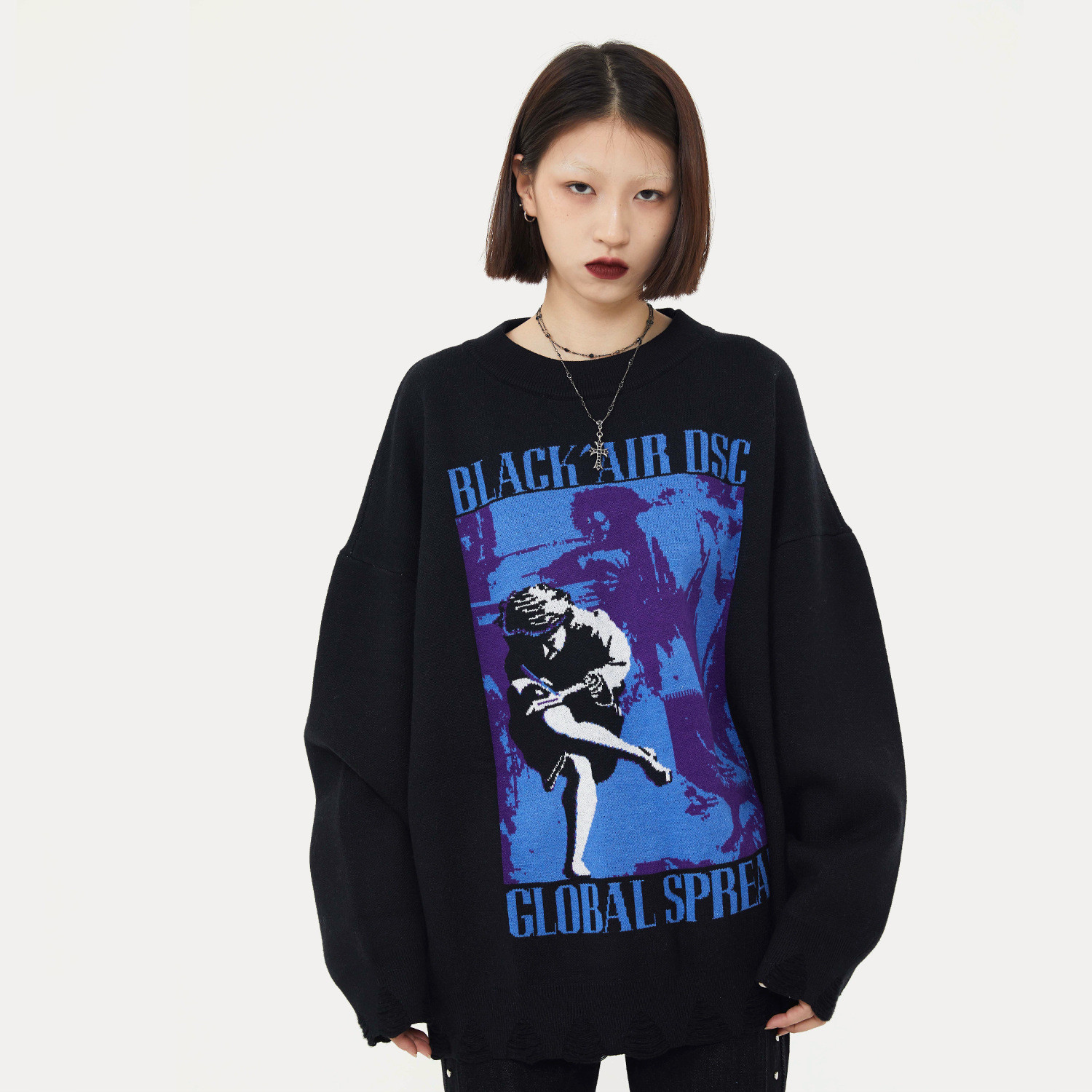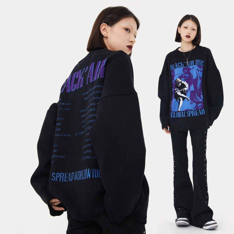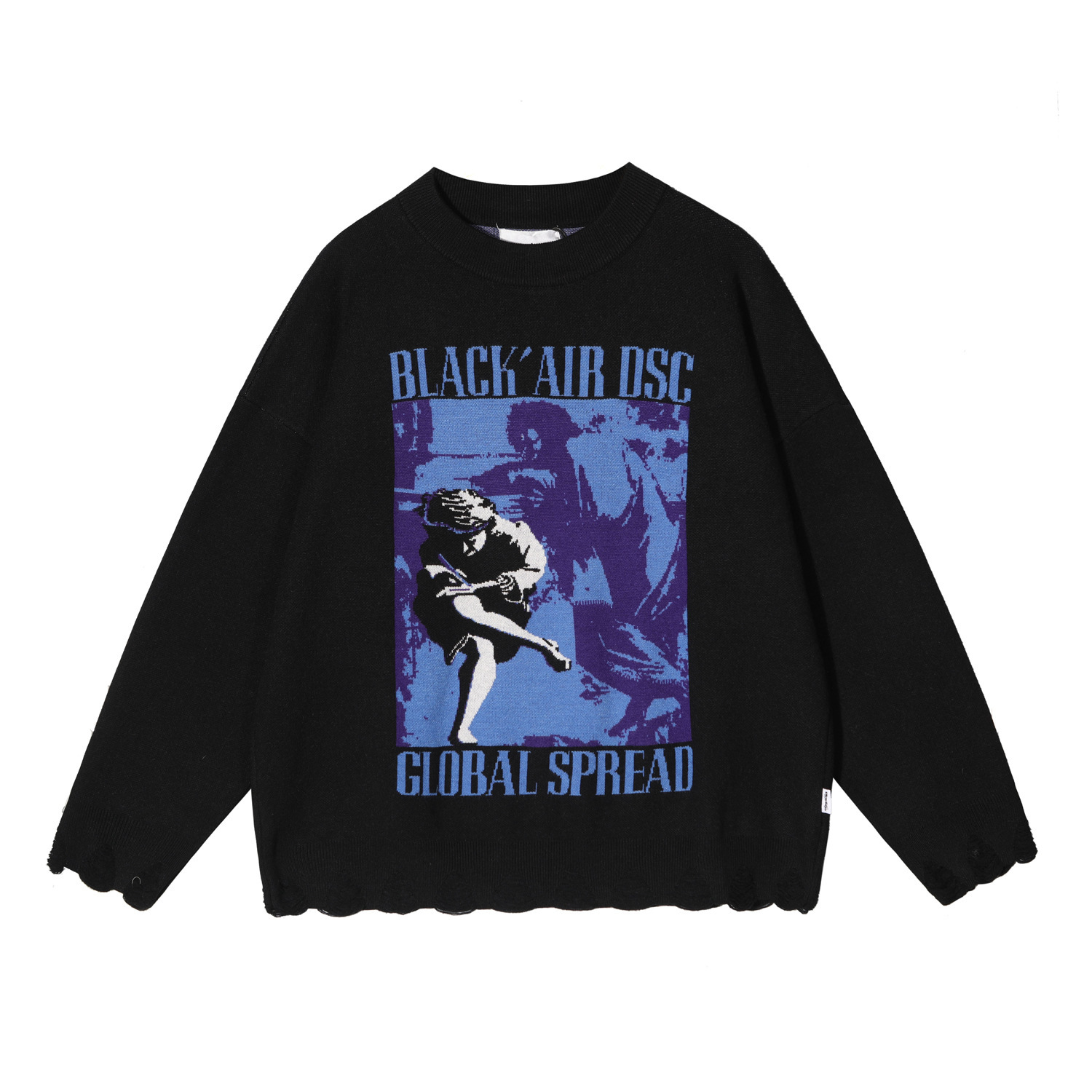 Sweater Wormhole Destruction American Street Sweater Retro Black