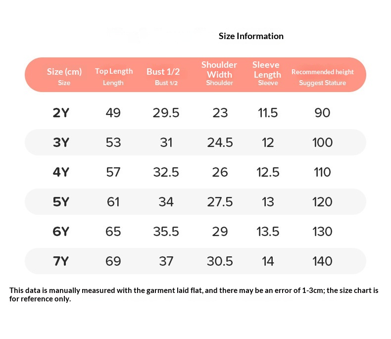 Suitable Heights: 2Y (90cm), 3Y (100cm), 4Y (110cm), 5Y (120cm), 6Y (130cm), 7Y (140cm)