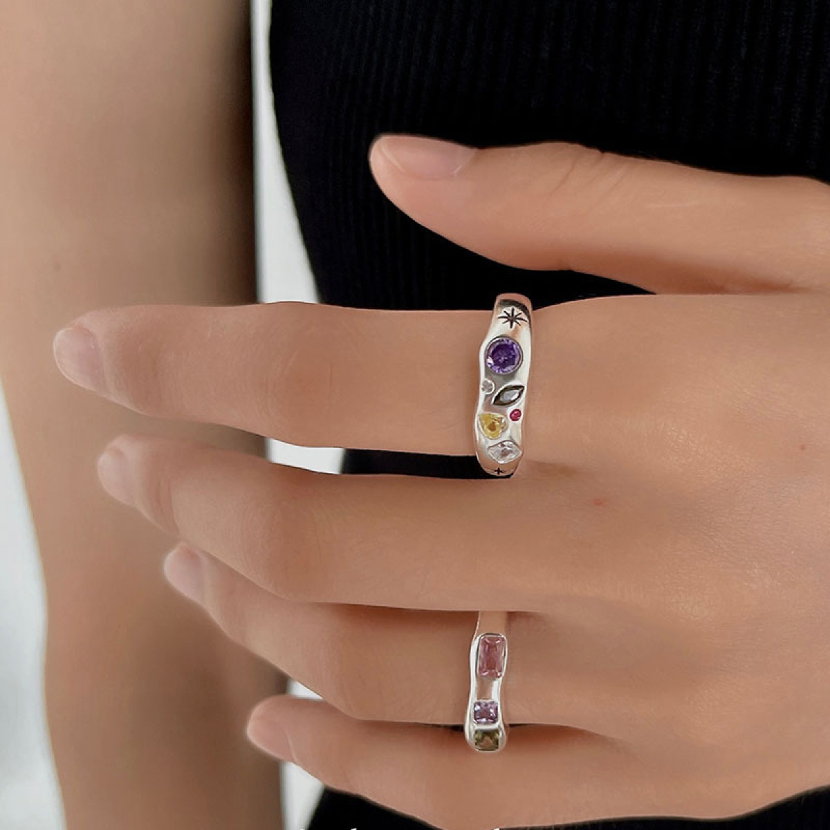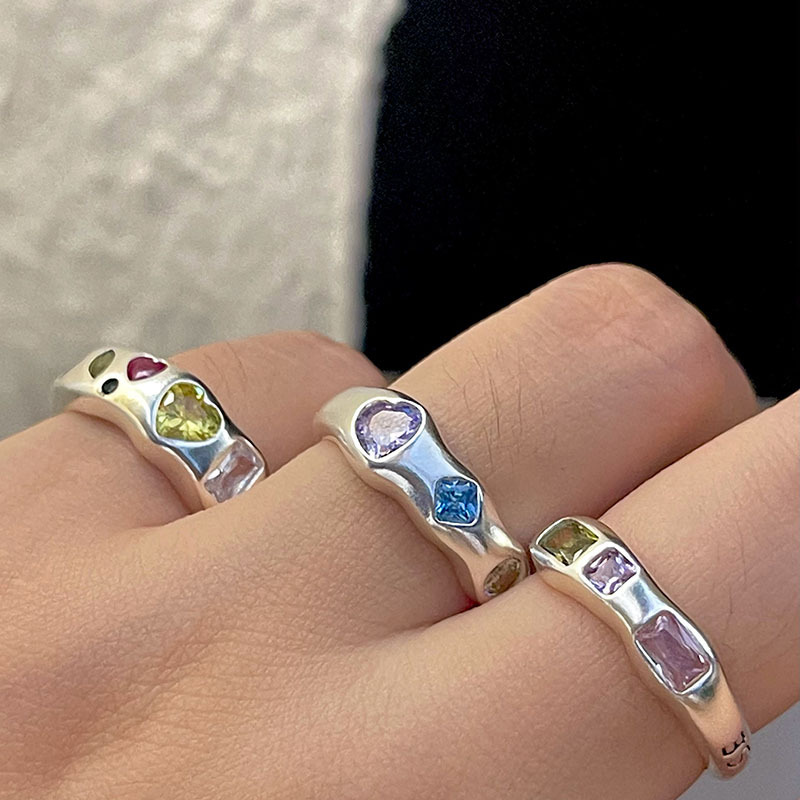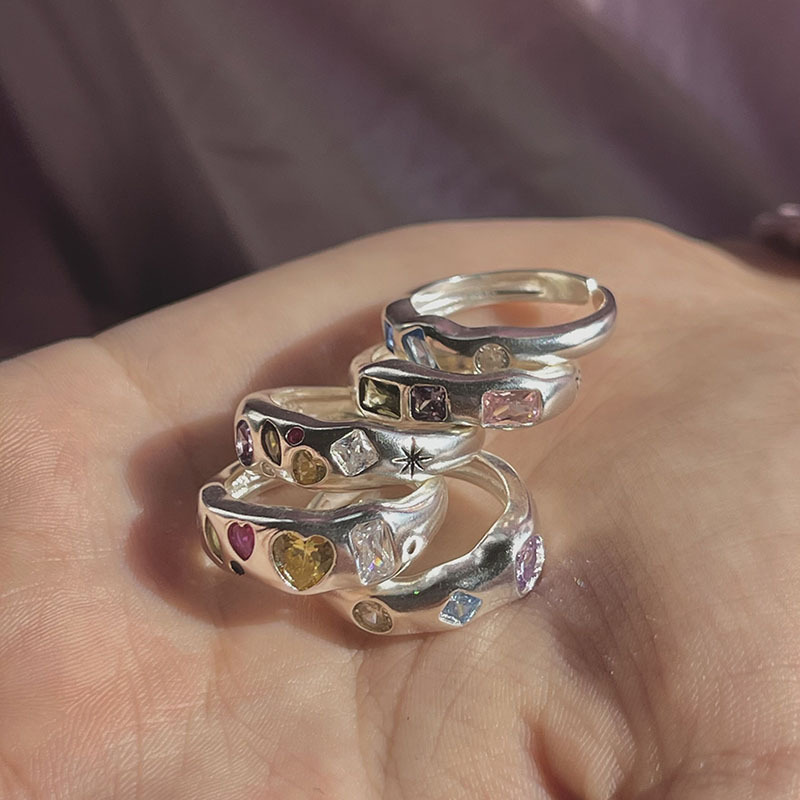 Colors: Yellow Heart Zircon Ring 0241, Square Zircon Ring 0237, Gold Square Zircon Ring 0238, Yellow Heart Zircon Ring 0242, Silver Band Sky-Blue Square Zircon Ring 0247, Gold Band Sky-Blue Square Zircon Ring 0248