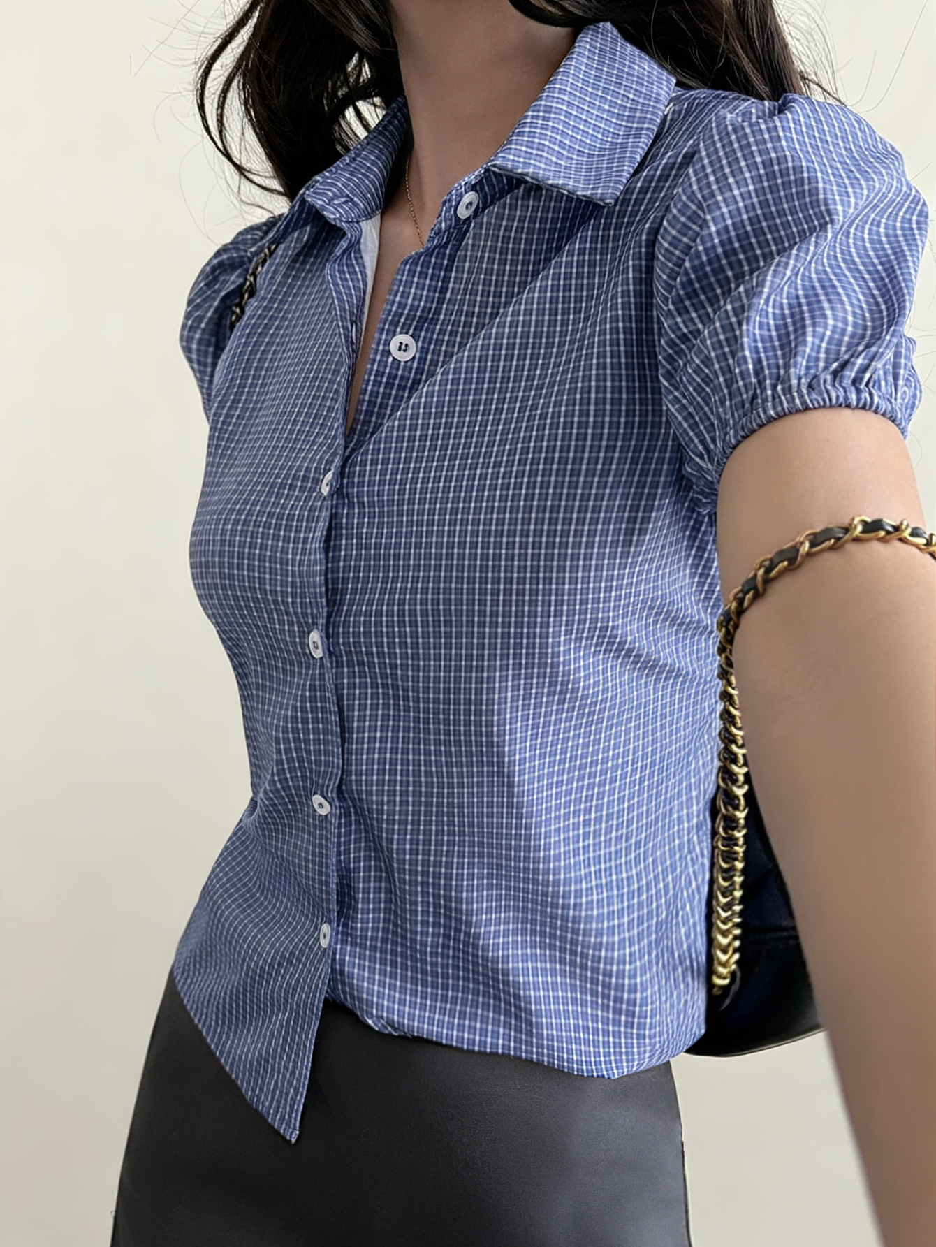 Sweet And Spicy Short Plaid Shirt With A Turn Down Collar And A Fitted Waist