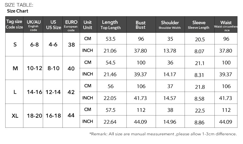 1. Asian sizes are 1 to 2 sizes smaller than European and American people. Choose the larger size if your size between two sizes. Please allow 2-3cm differences due to manual measurement. 2. Please check the size chart carefully before you buy the item, if you don't know how to choose size, please contact our customer service. 3.As you know, the different computers display colors differently, the color of the actual item may vary slightly from the following images.