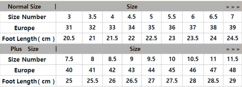 Size: 34, 35, 36, 37, 38, 39, order 32, order 33, order 40, order 41, order 42, order 43