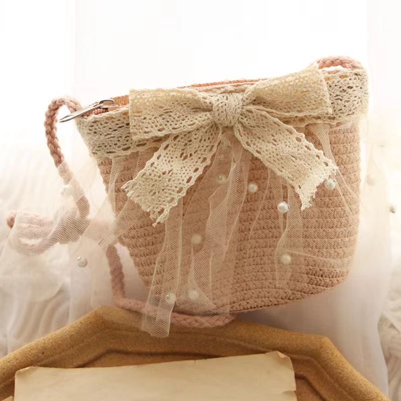 Color: Lace bow bag-pink, lace bow bag-beige, lace bow bag-khaki, lace bow bag-milk white, lace bow bag-green