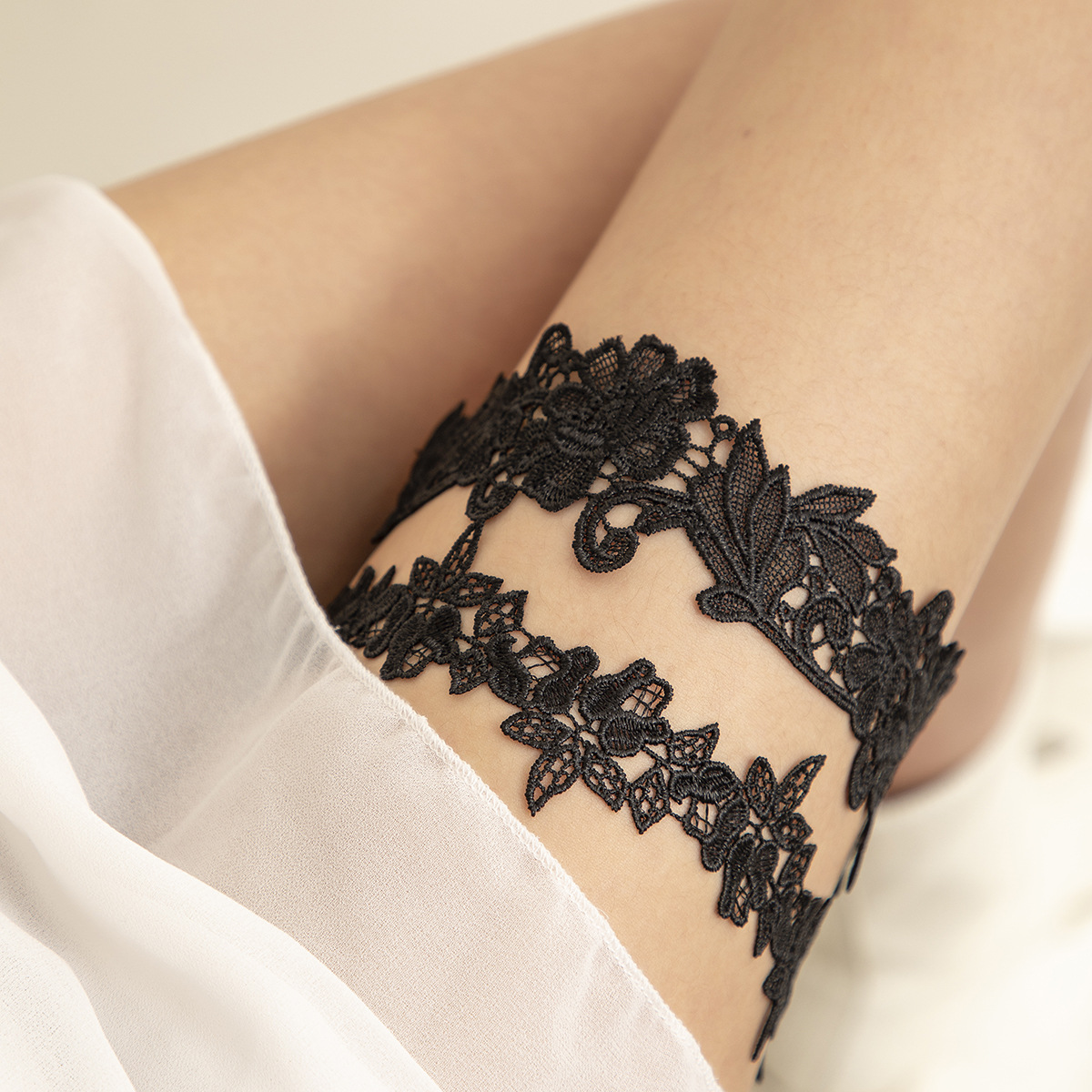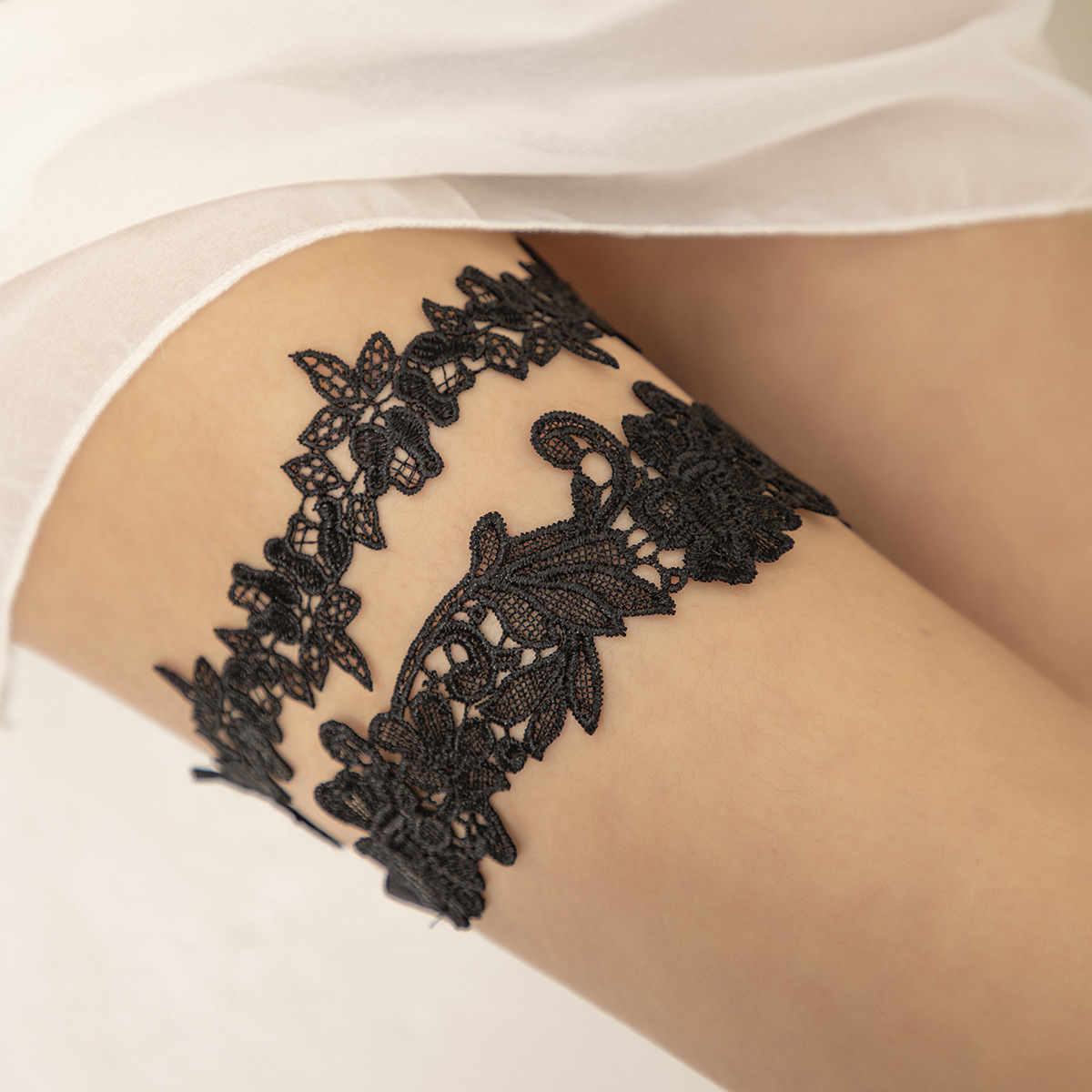 Sweet Cool Nightclub Style Double Layer Black Lace Thigh Chain