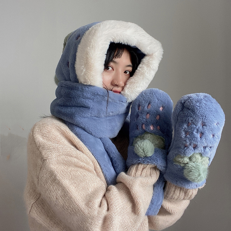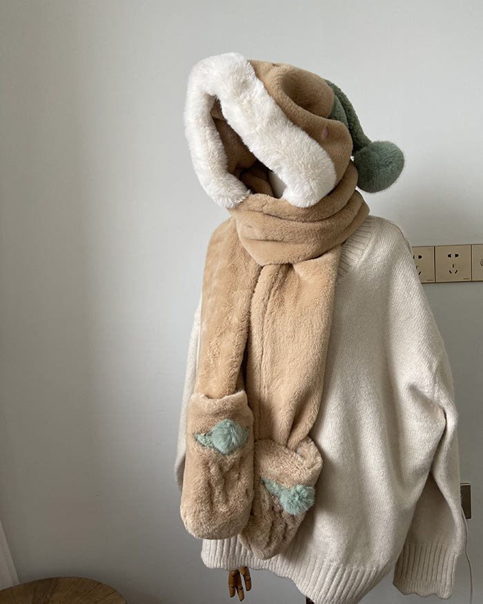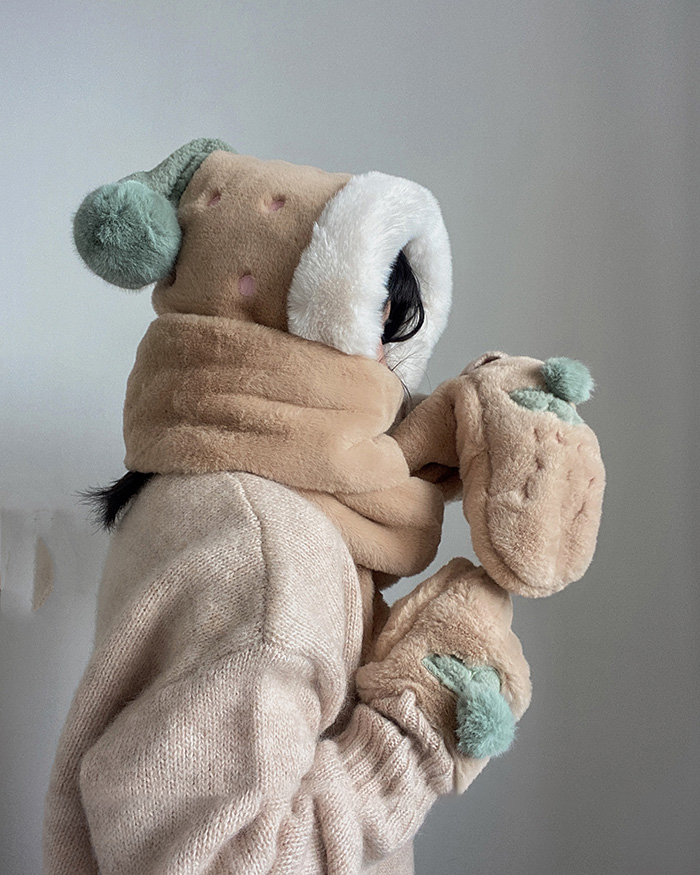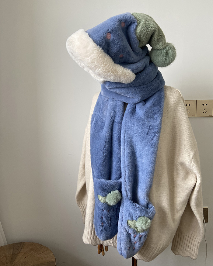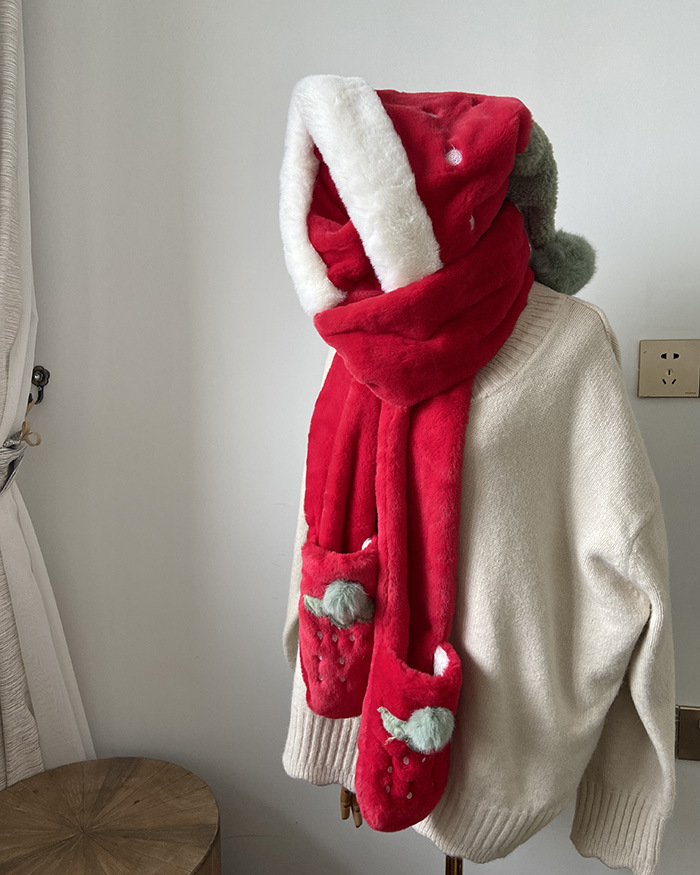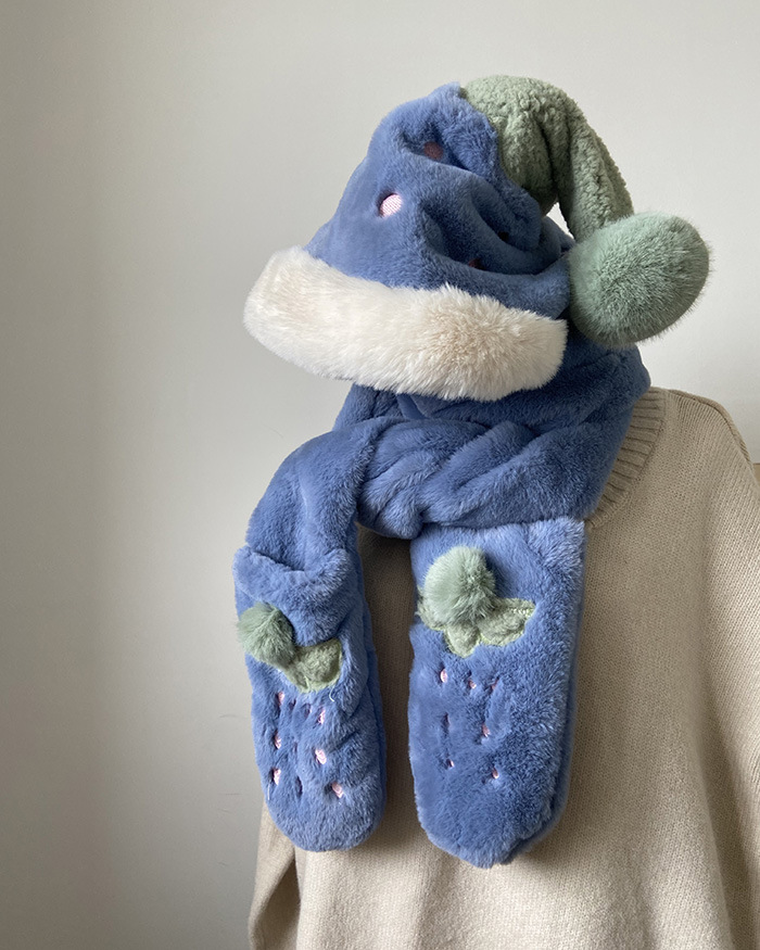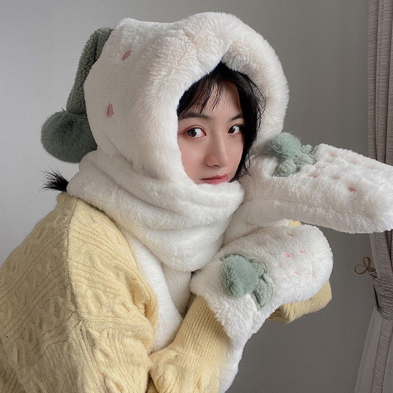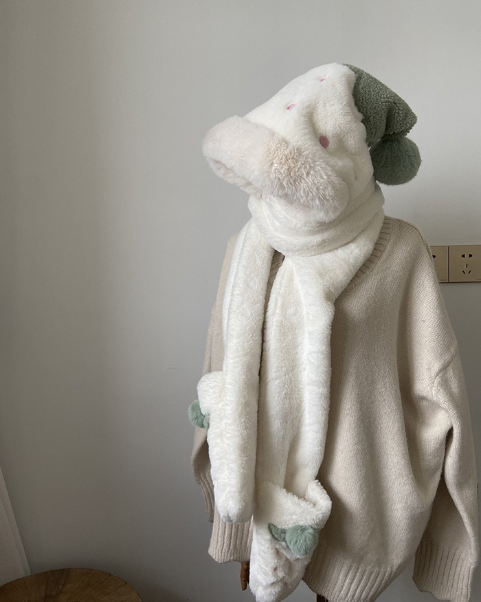 Size: The long side of the scarf is about 120cm and the short side is about 60cm (not counting the one behind the hat)