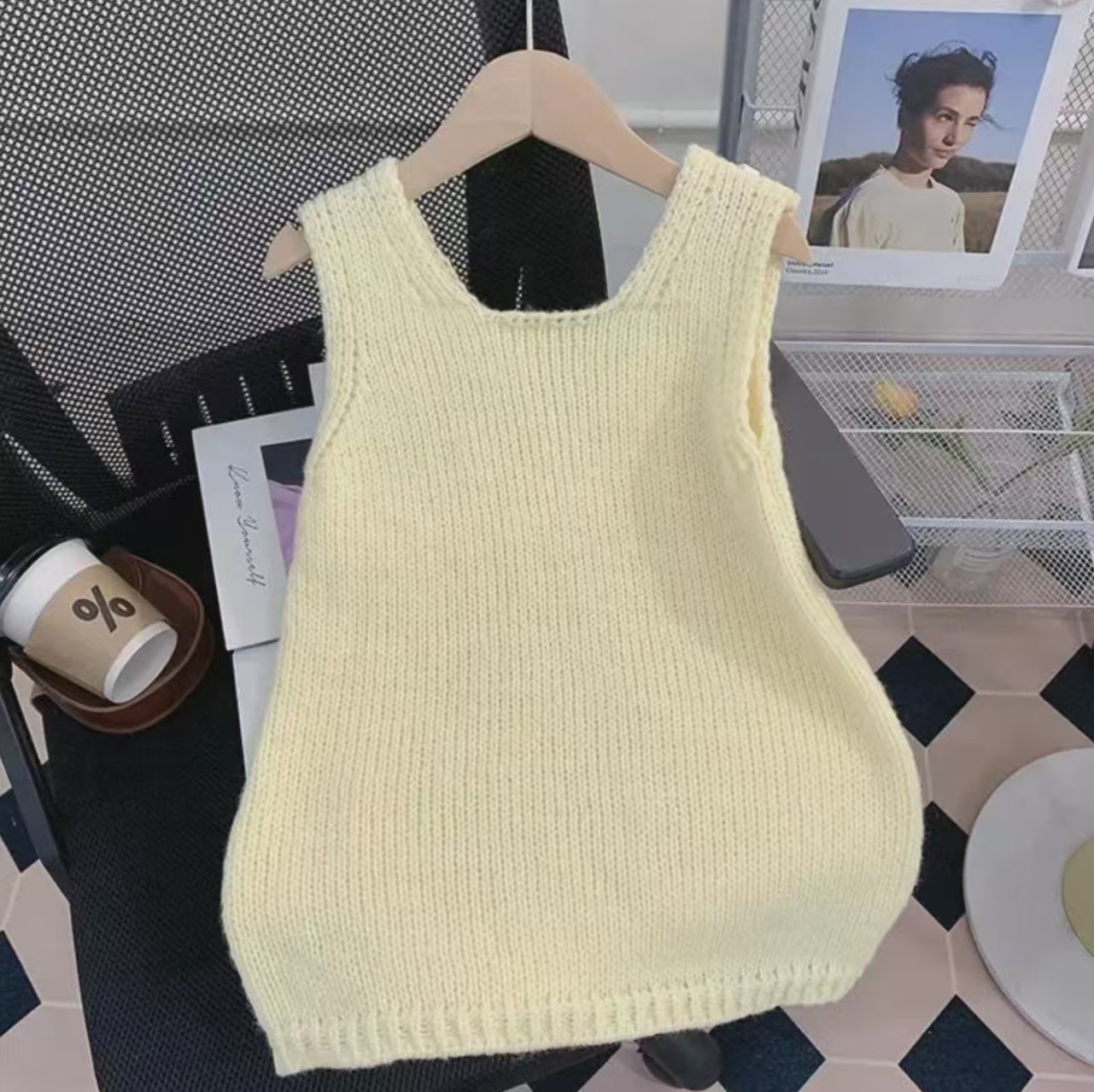 Color: yellow knitted vest skirt