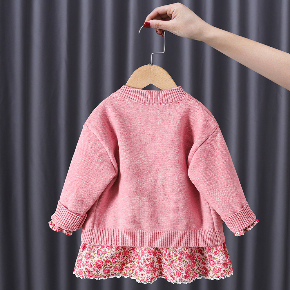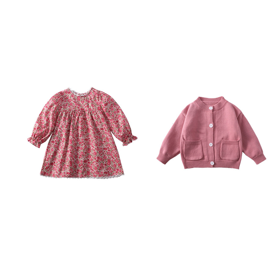 Color: pink suit, blue suit, pink sweater ~ only sweater, pink skirt, blue sweater, red sweater, red, white floral, yellow vest