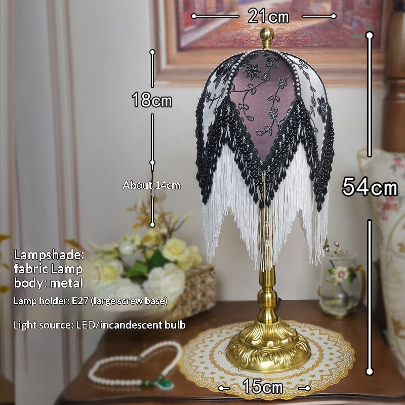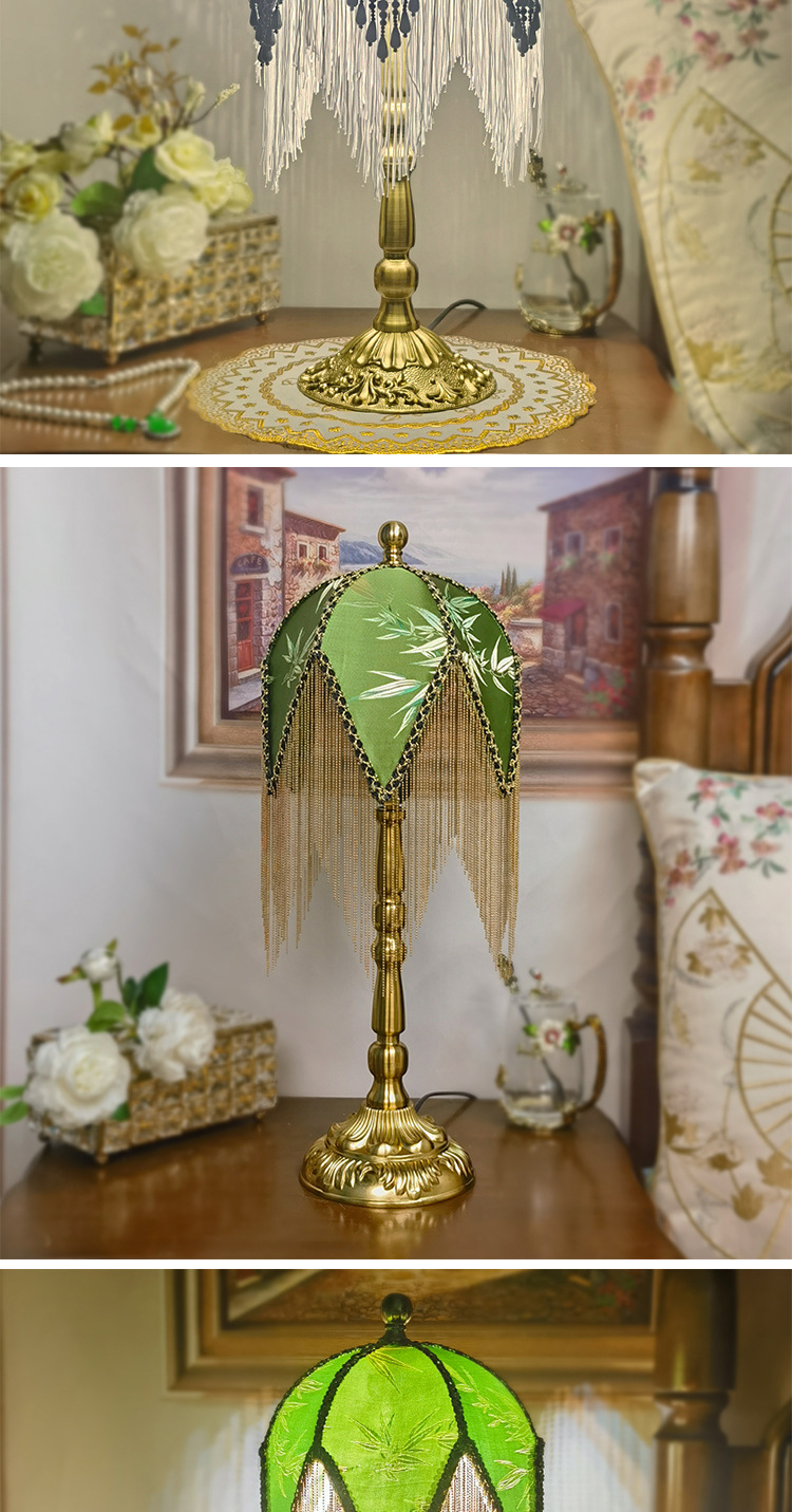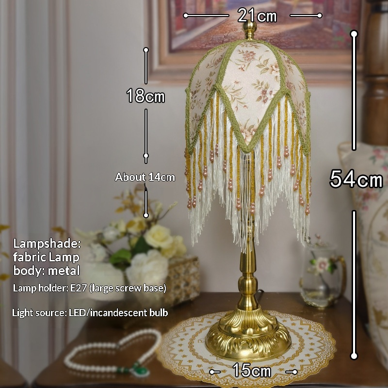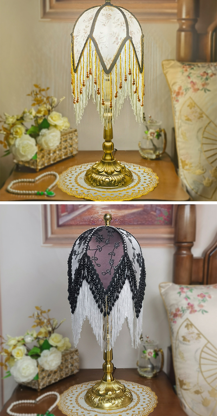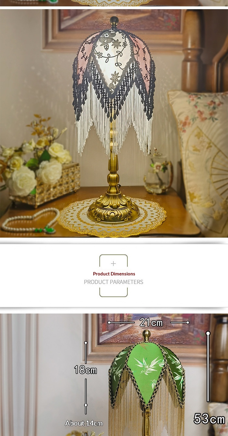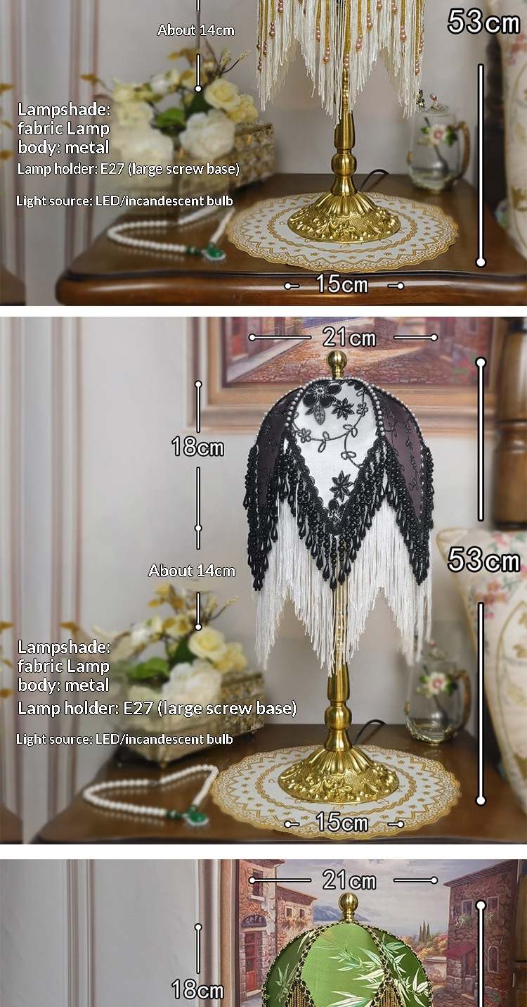 Style5: Wide design; vintage tassel shade + European-style carved base – 53 cm high, 21 cm wide;