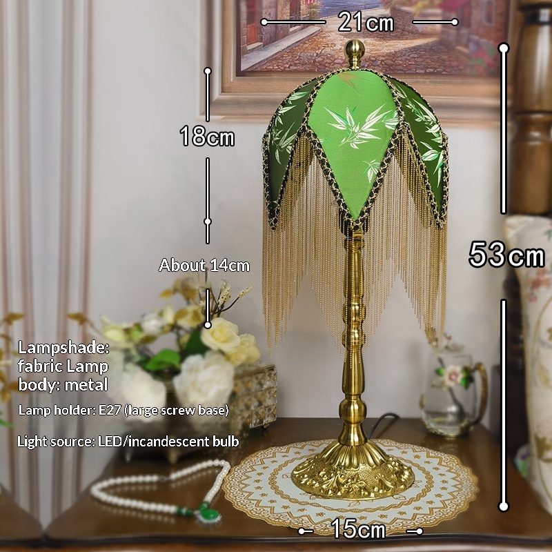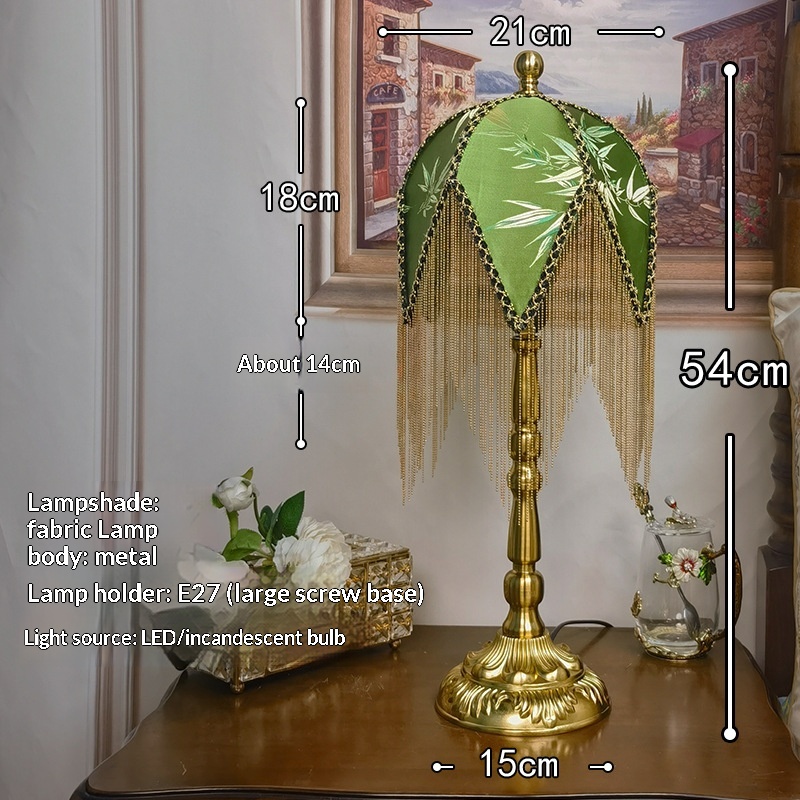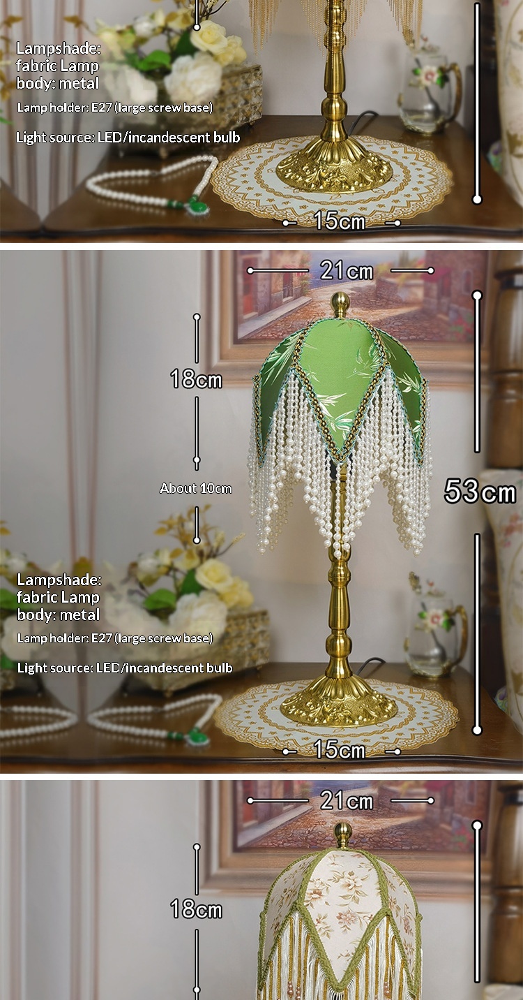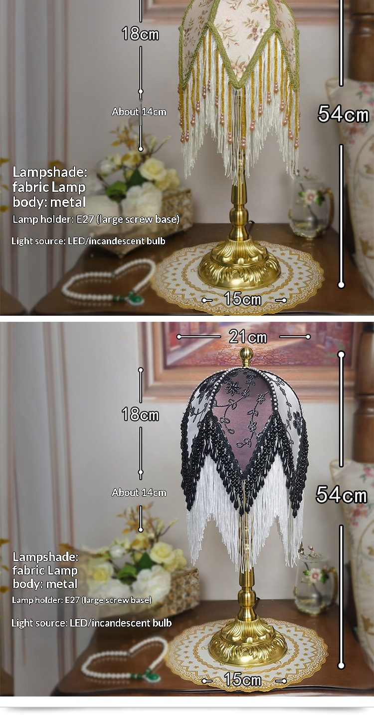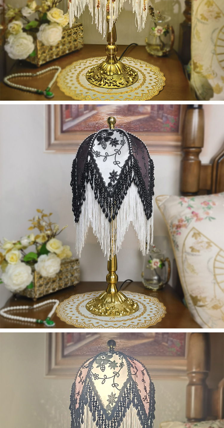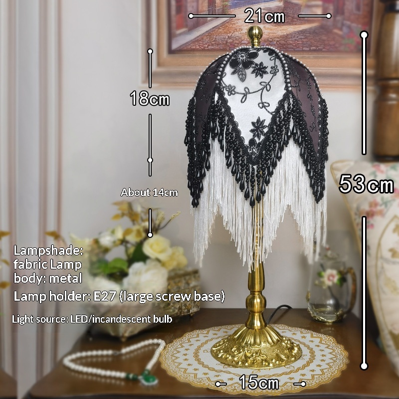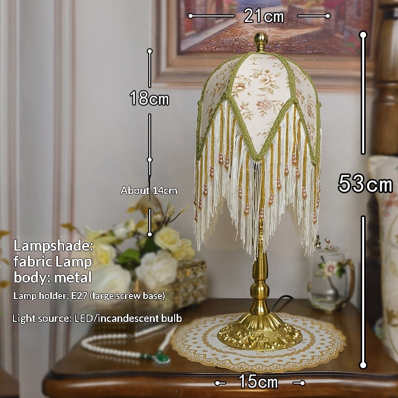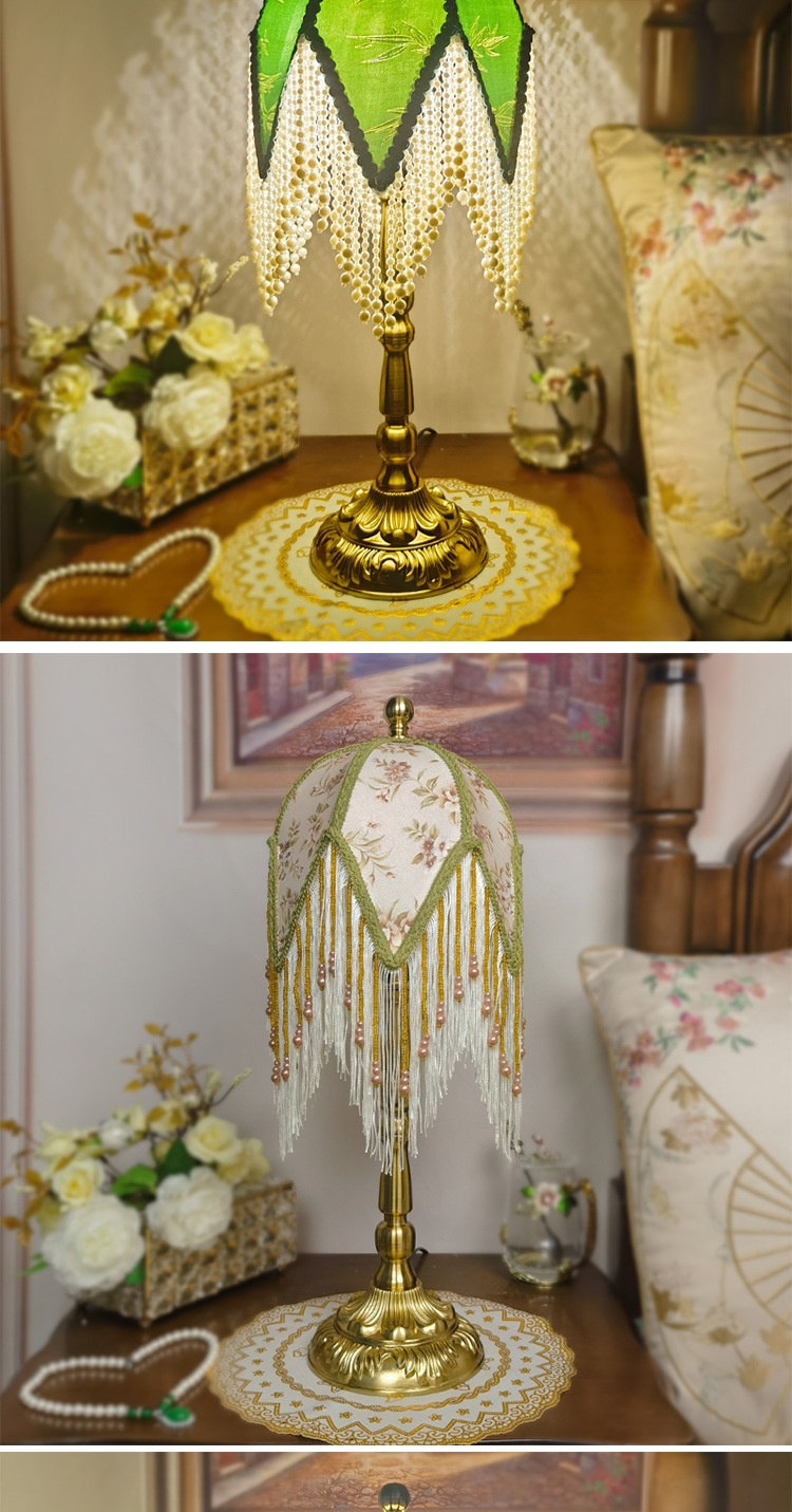 Style5: Wide design; vintage tassel shade + European-style carved base – 53 cm high, 21 cm wide;