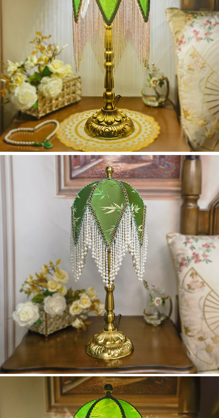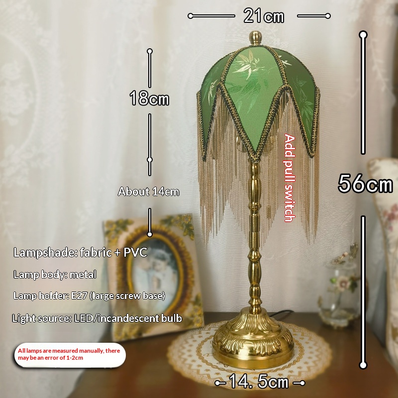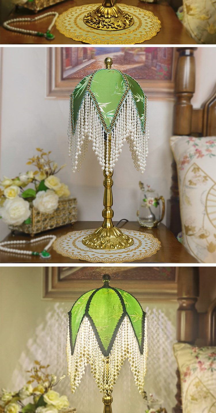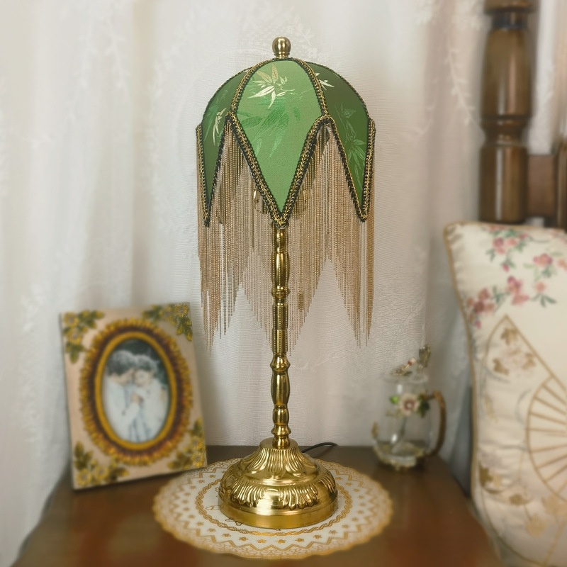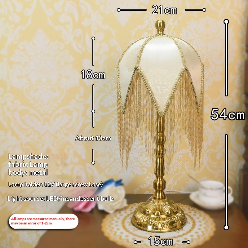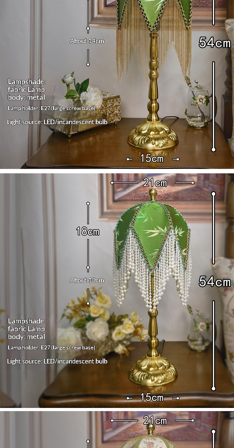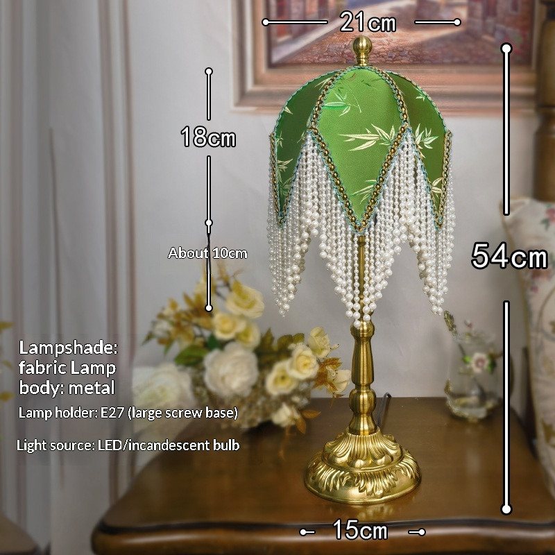 Style5: Wide design; vintage tassel shade + European-style carved base – 53 cm high, 21 cm wide;