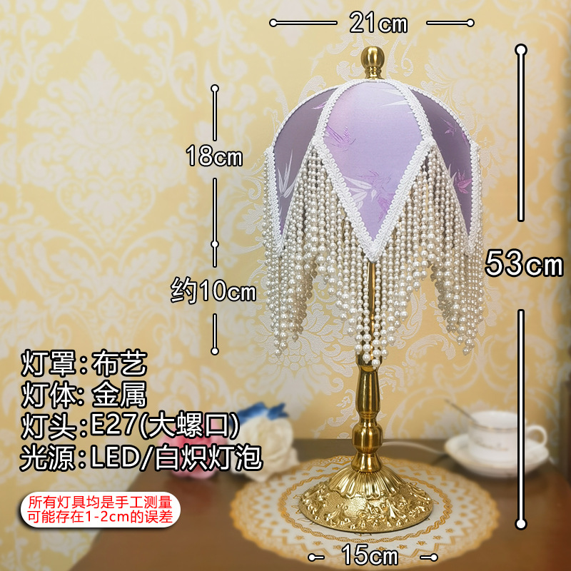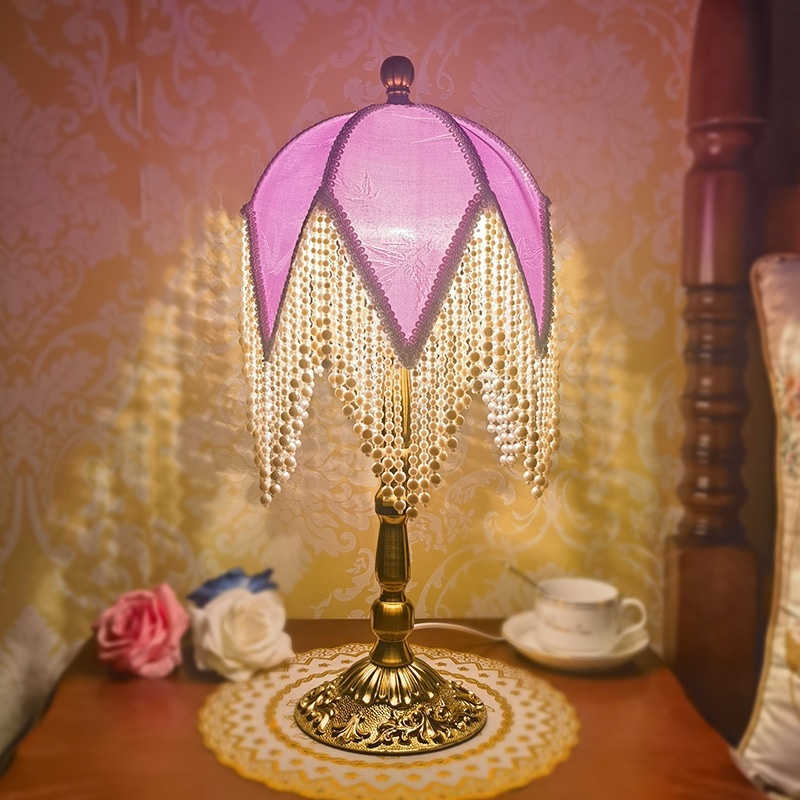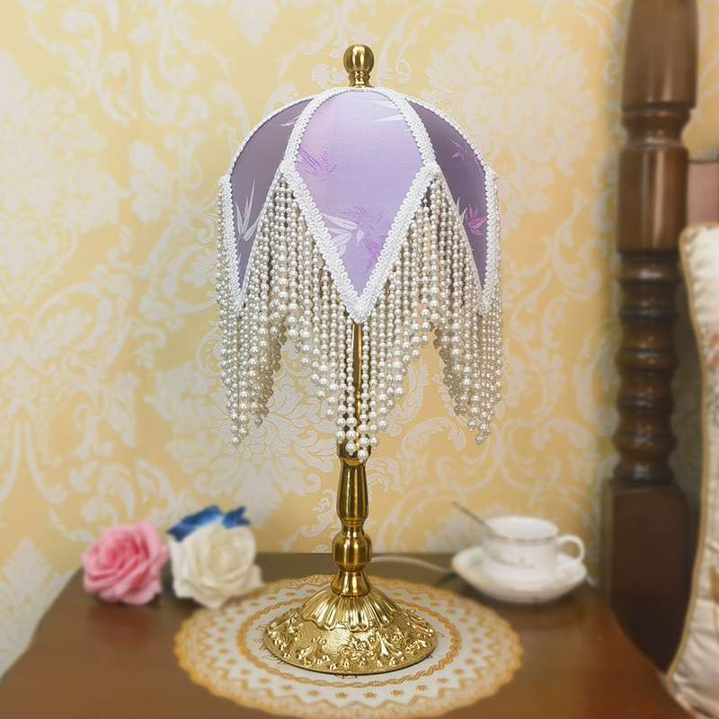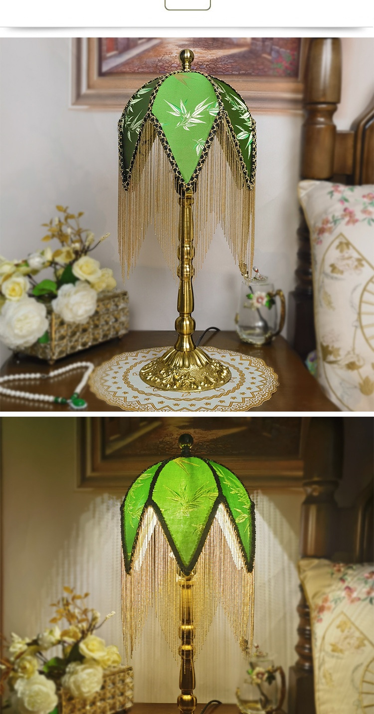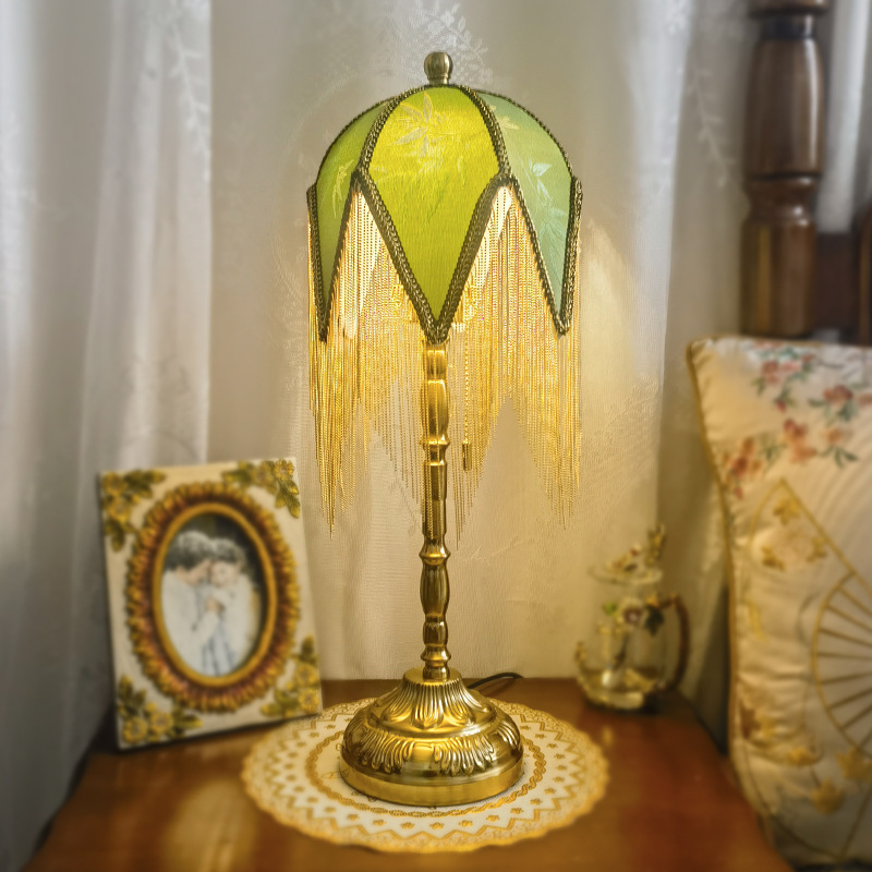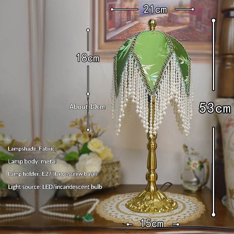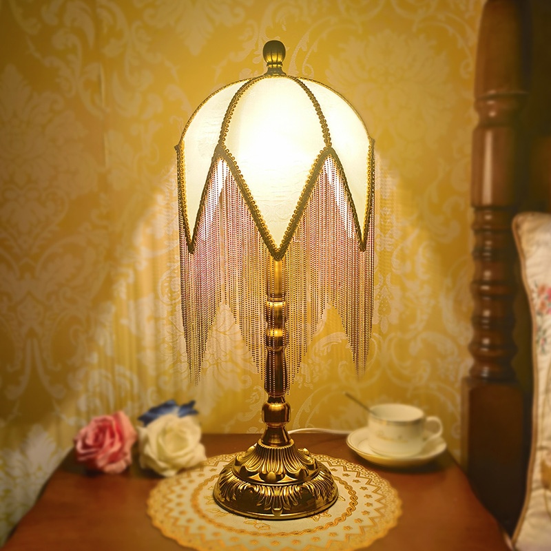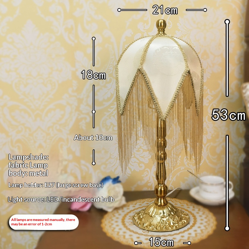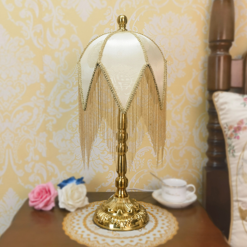 Style5: Wide design; vintage tassel shade + European-style carved base – 53 cm high, 21 cm wide;