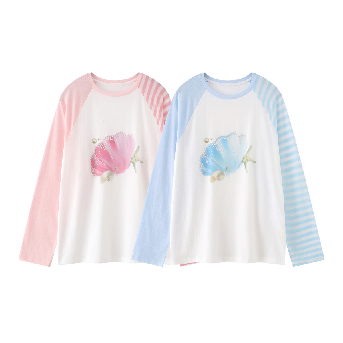 Sweet Girl Pattern Color Contrast Long Sleeve T-shirt