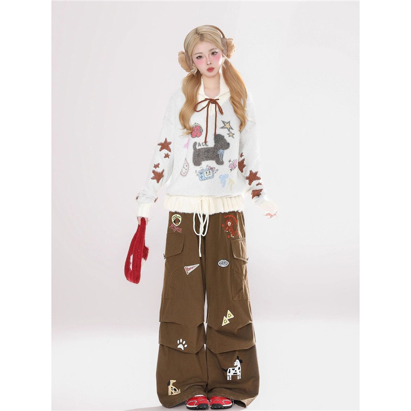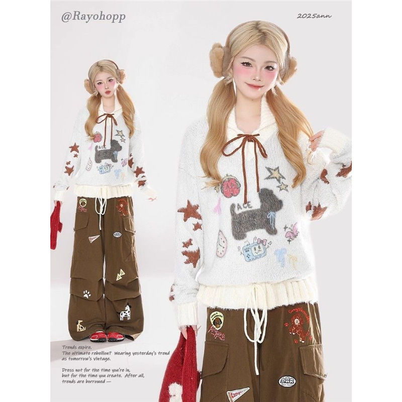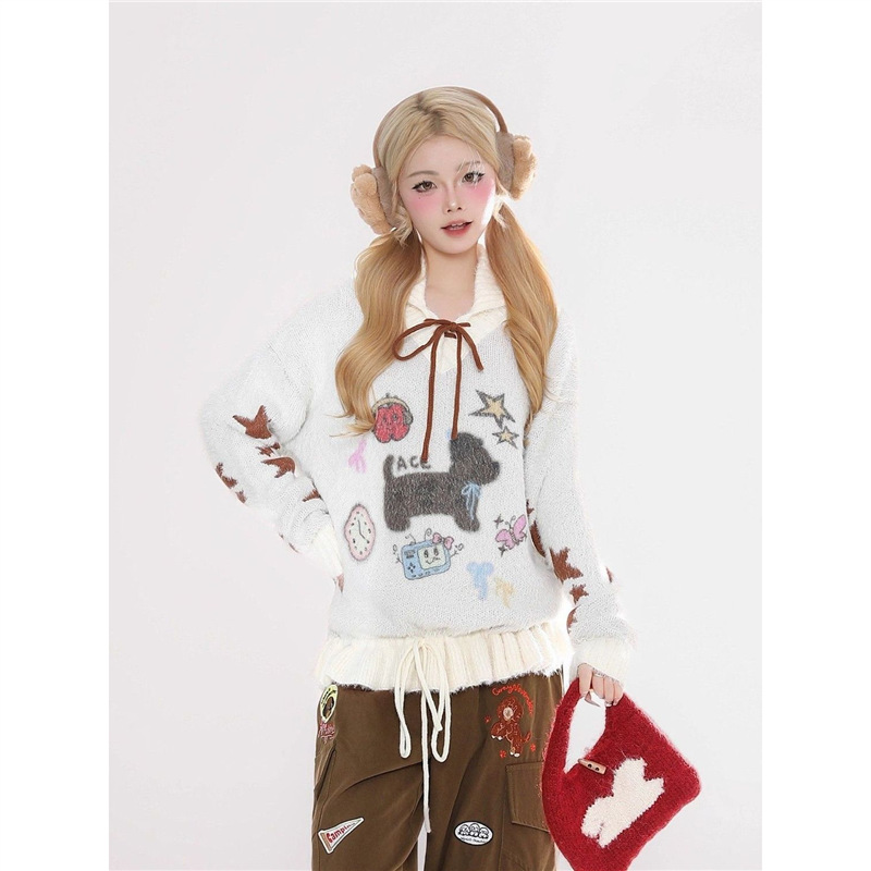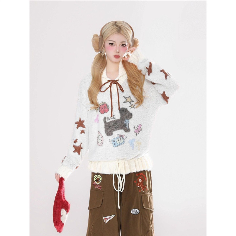 Sweet Puppy Embroidery Sweater Coat For Women Relaxed-Style Knitted Top