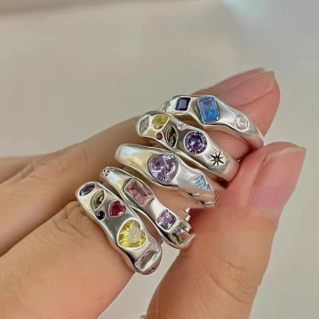 Color: Pink sugar ring, blue sugar ring, purple love ring, color geometric ring, candy love ring