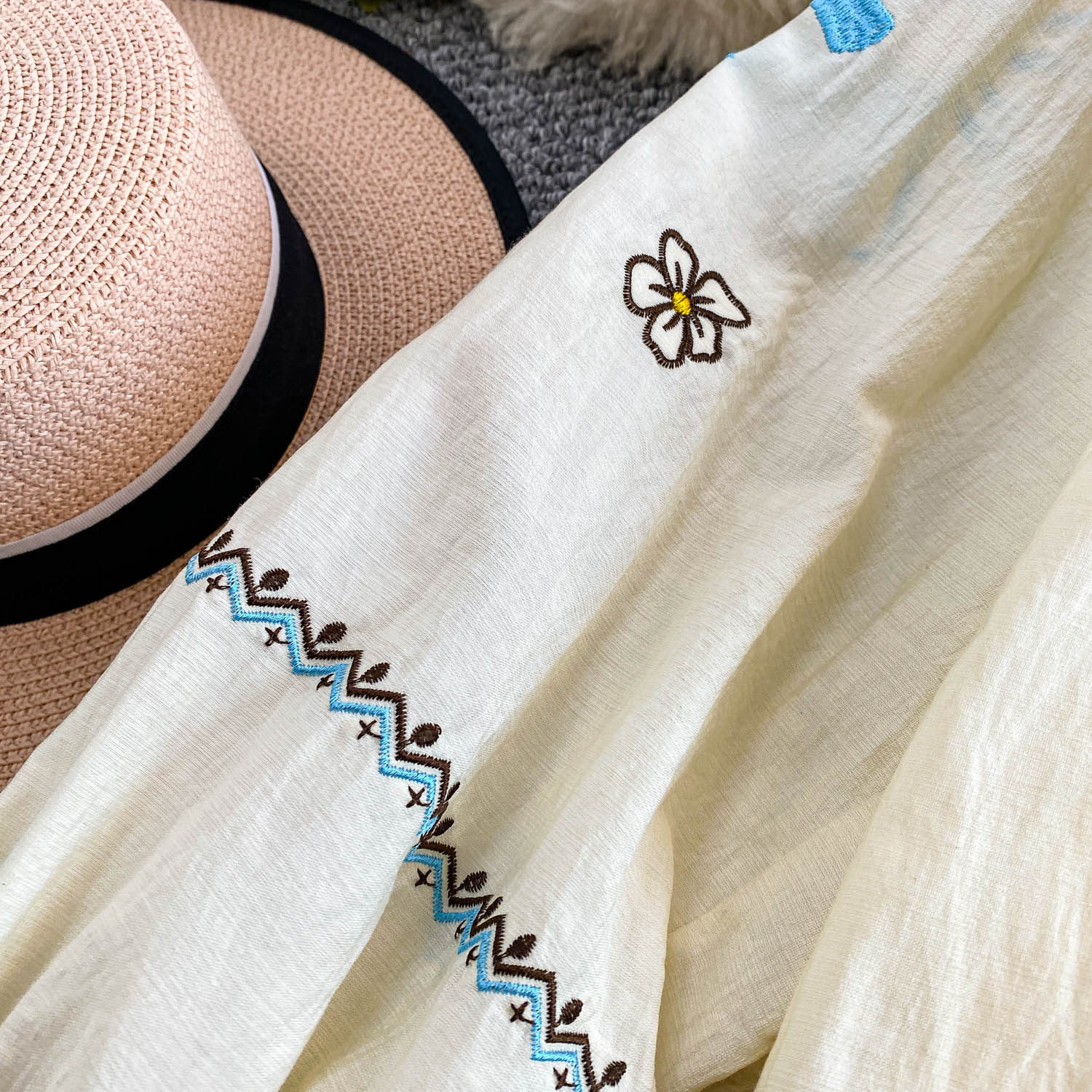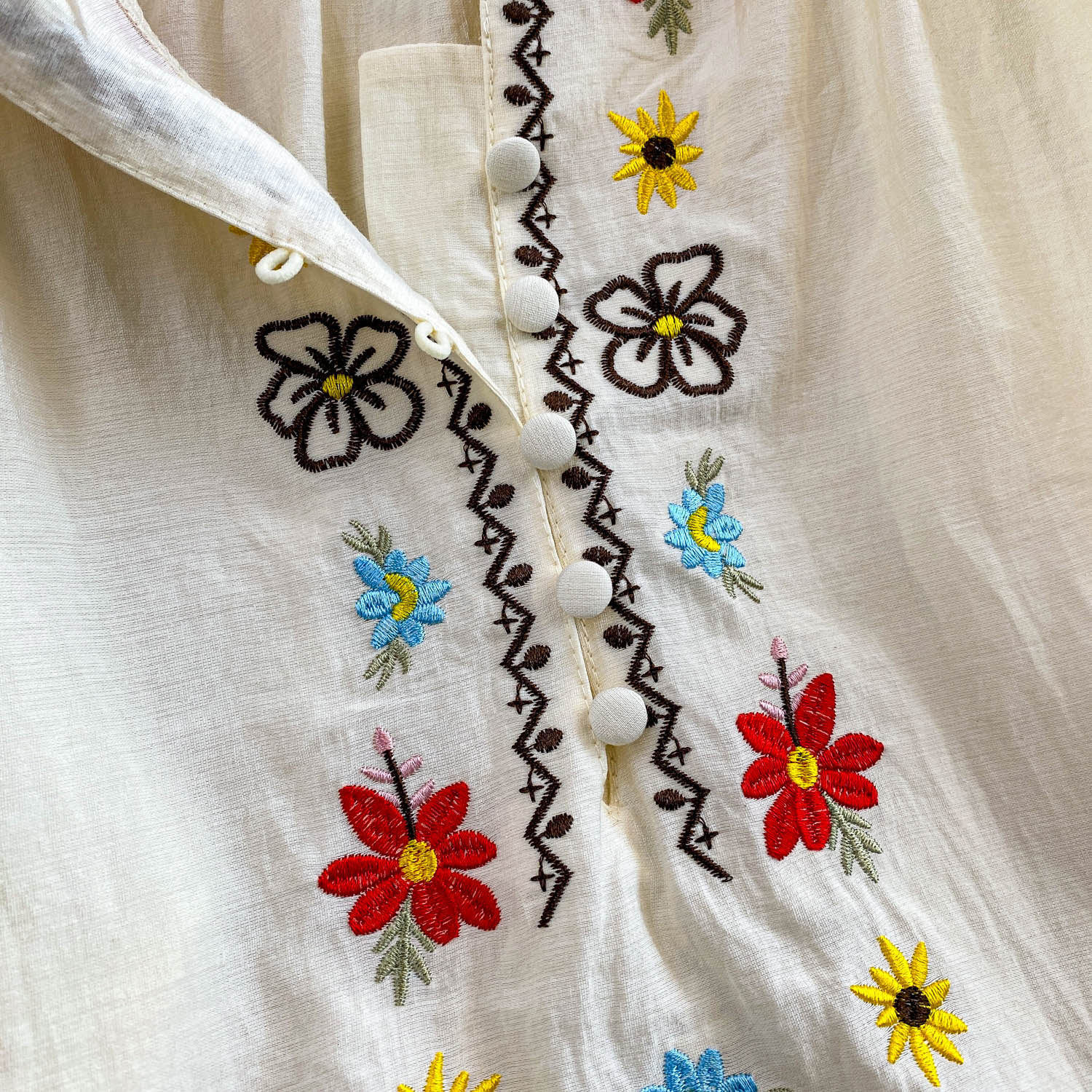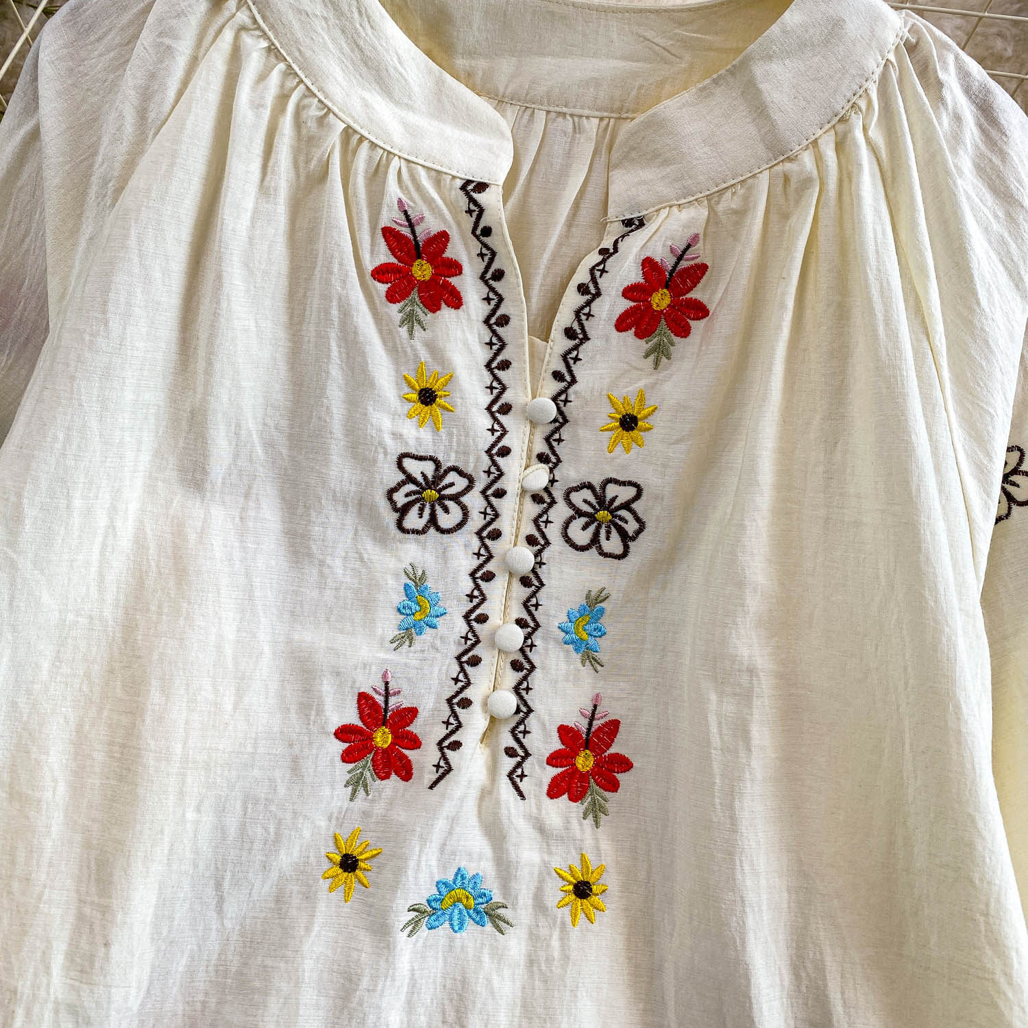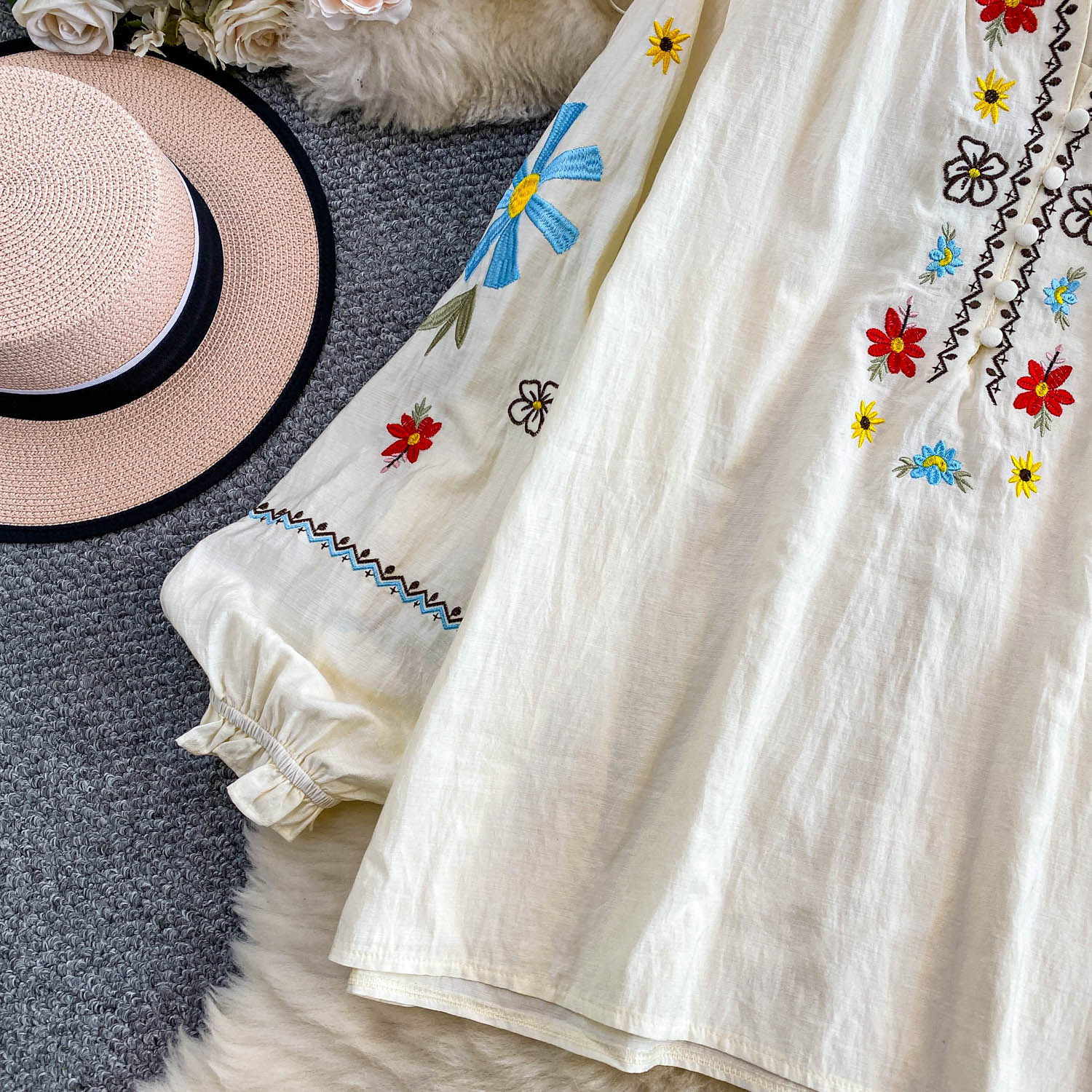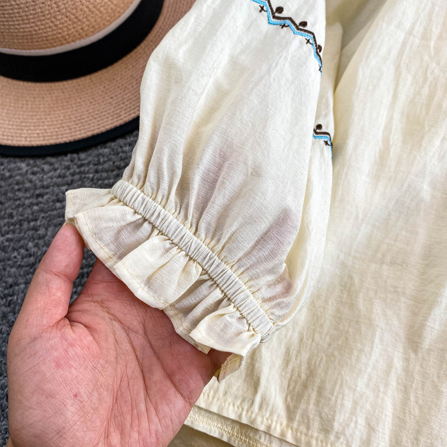 Sweet, Youth-Enhancing Floral Embroidery Stand Collar Puff Sleeve Shirt