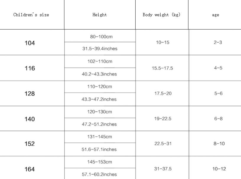 Size: adult S, adult M, adult L, adult XL, children 104, children 116, children 128, children 140, children 152, children 164