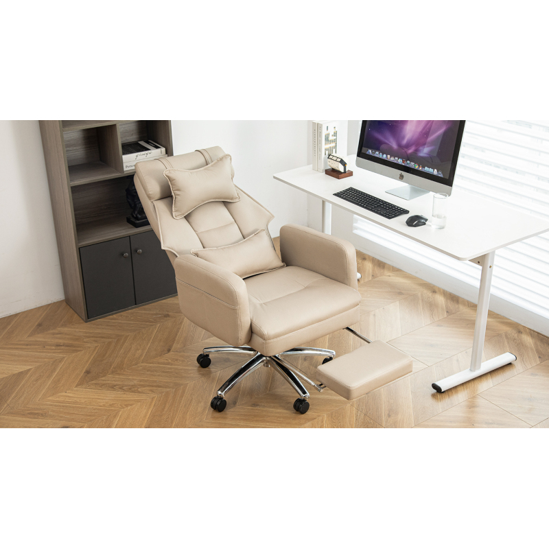 Product Name:Swivel Ergonomic Office Chair, Technology Leather High Back Office Chair with Lumbar Support Headrest, Sedentary Comfortable Boss Chair, 155° Reclining Computer Chair (Color : Beige)