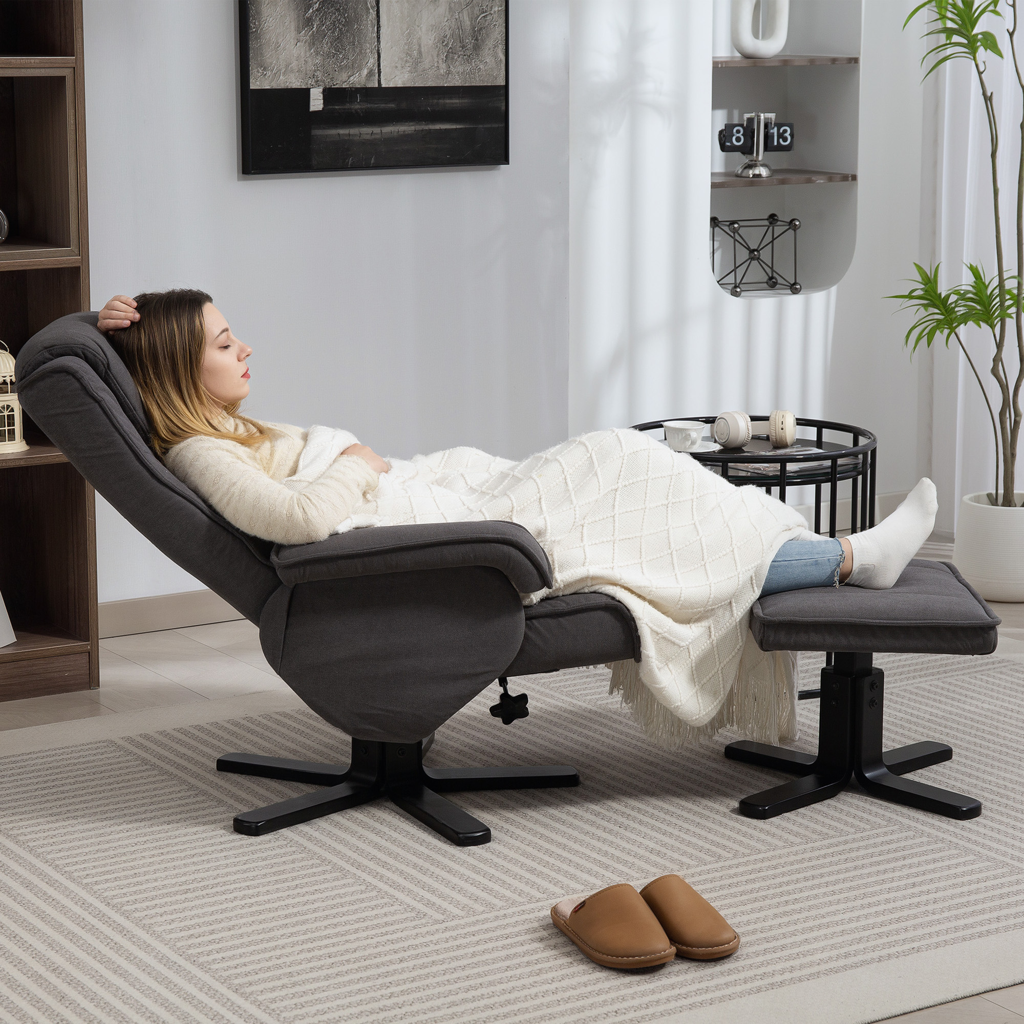 Swivel Recliner Chair With Footstool - Charcoal Grey Velvet
