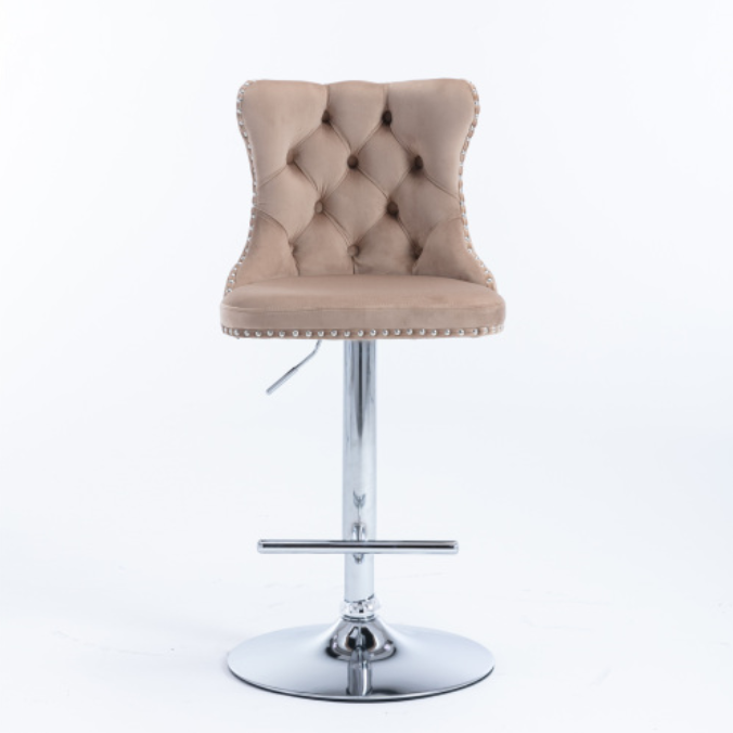 Product Name:A&A Furniture,Swivel Velvet Barstools Adjusatble Seat Height from 25-33 Inch, Modern Upholstered Chrome base Bar Stools with Backs Comfortable Tufted for Home Pub and Kitchen Island(Khaki,Set of 2)