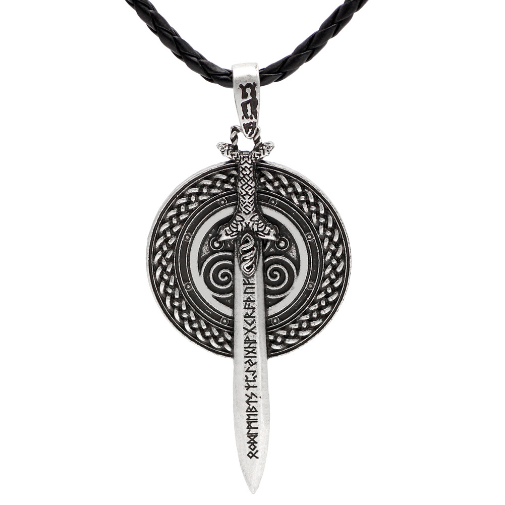 [Name]: Nordic Viking Warrior Sword and Shield Runa Rune Jewelry Wholesale