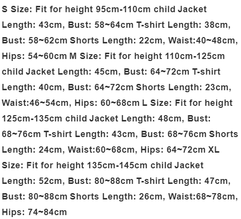 Color: jacket, T-shirt, shorts, gloves, children's embroidered jacket, children's T-shirt, children's shorts