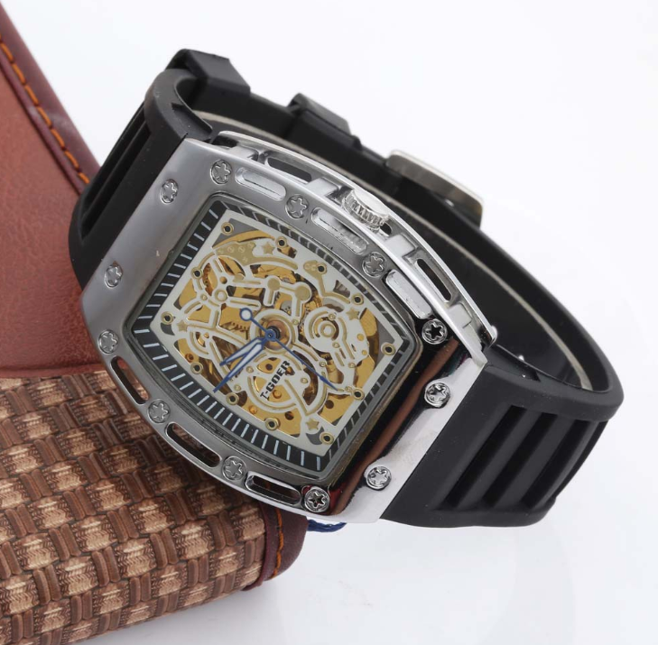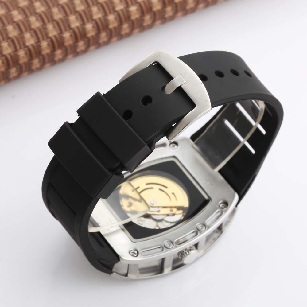 Brand Goer / Gore Whether to import No Model GZ0107 Display type pointer for the crowd male style leisure Waterproof, waterproof, 10m, movement type, mechanical Movement origin Japan movement model Dandong movement brand Dandong Dial diameter 40mm *50mm thickness 15mm crown type spiral crown Bottom type Normal Mirror material High hardness glass Buckle style Pin buckle Buckle Material Stainless Steel Strap Material Silicone Dial Shape Round Case Material Stainless Steel Item No. GZ0107 Color silver shell black surface, silver shell white surface, gold shell gold surface