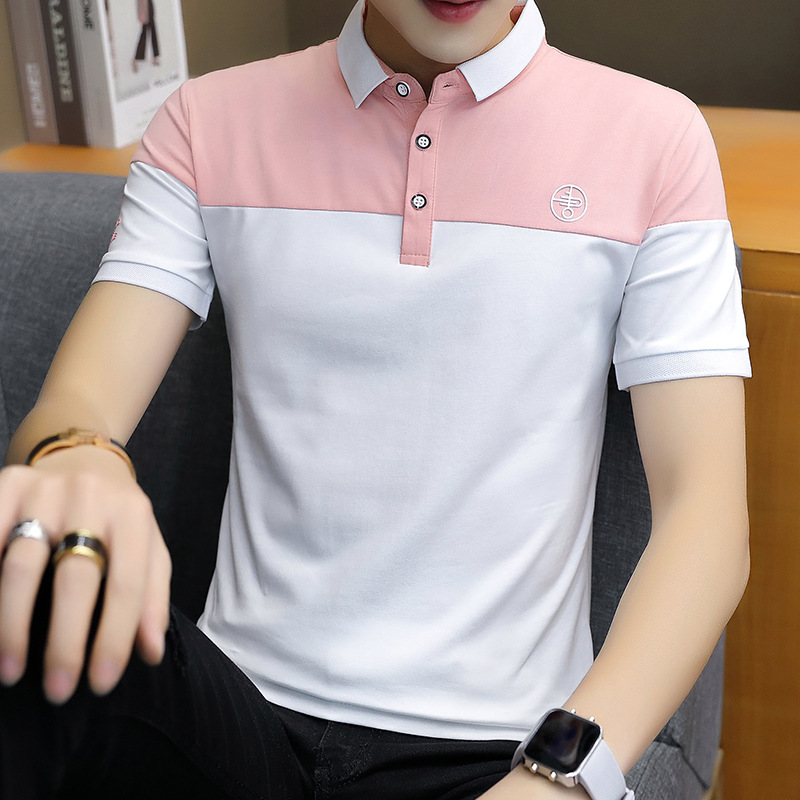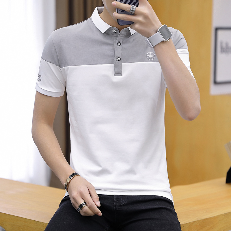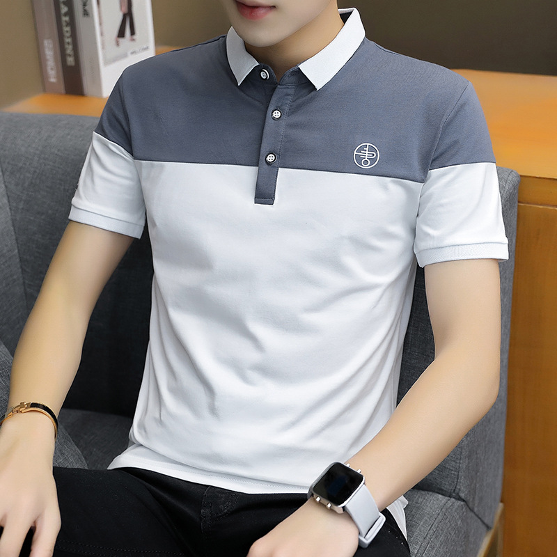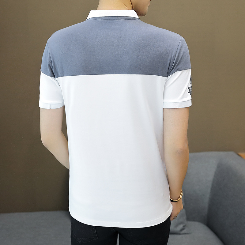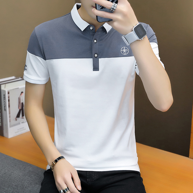 T-shirt Short-sleeved Slim-fit Lapel Colorblock Printing