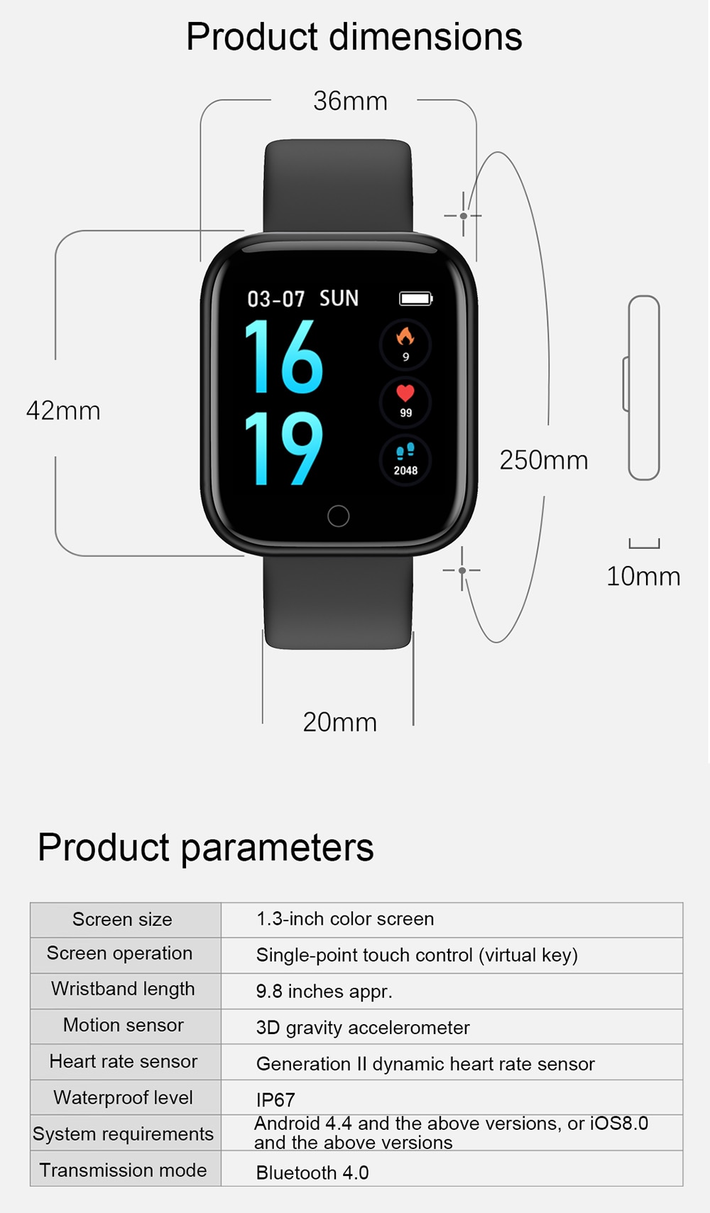 Wristband length: perimeter 250/25.4= approximately 9.8 inches
