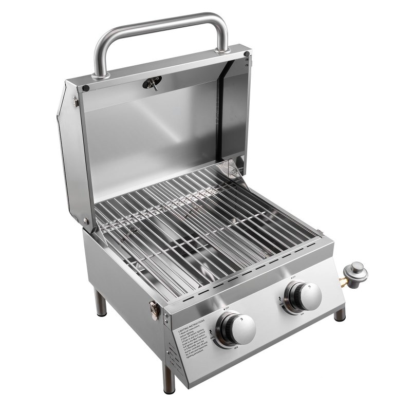 Fast Cooking: Equipped with 2 stainless steel burners and 15,000 BTU of heat, this tabletop grill provides fast, even heating. It locks in juices and nutrients, ideal for thick steaks and fresh vegetables, ensuring no long waits during group meals
