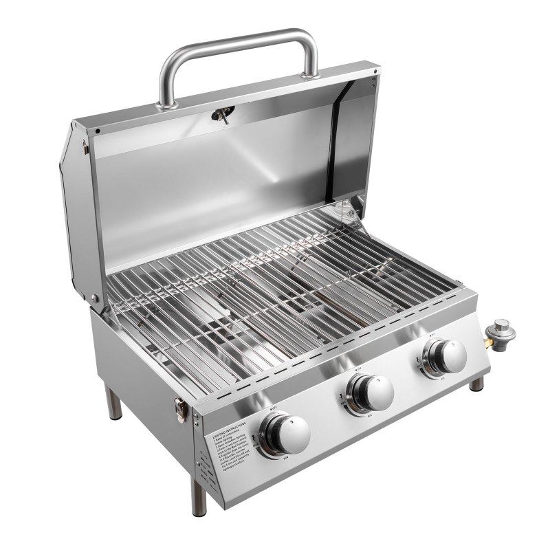 Fast Cooking: Equipped with 3 stainless steel burners and 22,500 BTU of heat, this tabletop grill provides fast, even heating. It locks in juices and nutrients, ideal for thick steaks and fresh vegetables, ensuring no long waits during group meals