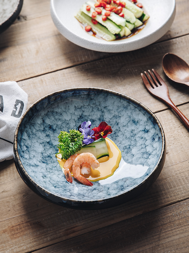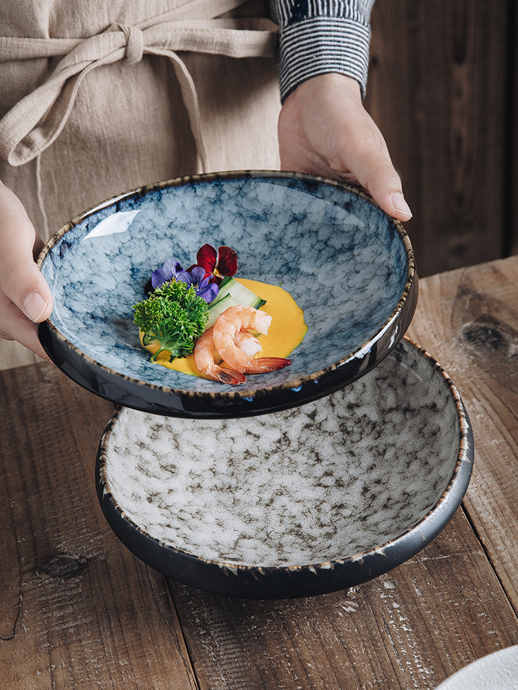 Color: Marble Gray-8-inch fat edge round bowl/long cm, rust point White-8-inch fat edge round bowl/long cm, thick point black-8-inch fat edge round bowl/long cm, brown stone pattern-8-inch fat edge round bowl/length 20.5cm